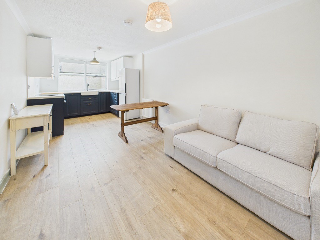 This traditional main door property comprises of: an entrance hall, an open plan kitchen-living room with recently renovated kitchen featuring fridge-freezer and dishwasher, a spacious double bedroom to the front with built-in wardrobe, second bedroom to the rear with door out to the private rear garden, currently set up as a study room, bathroom with shower over bath and a utility cupboard with washing machine.