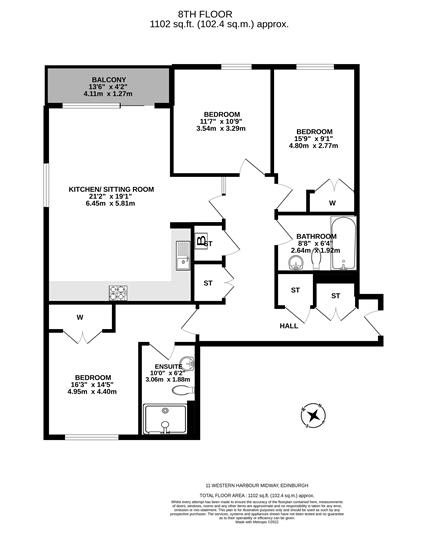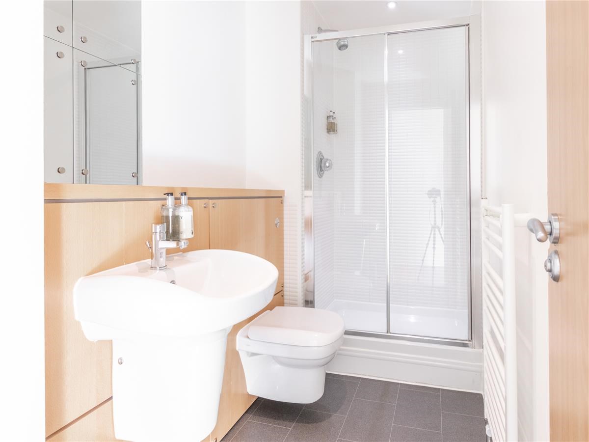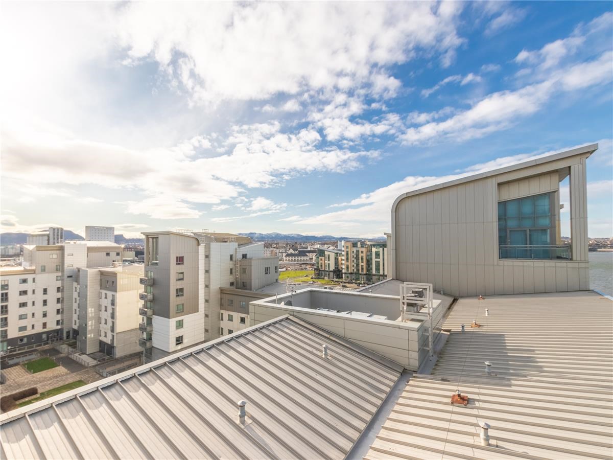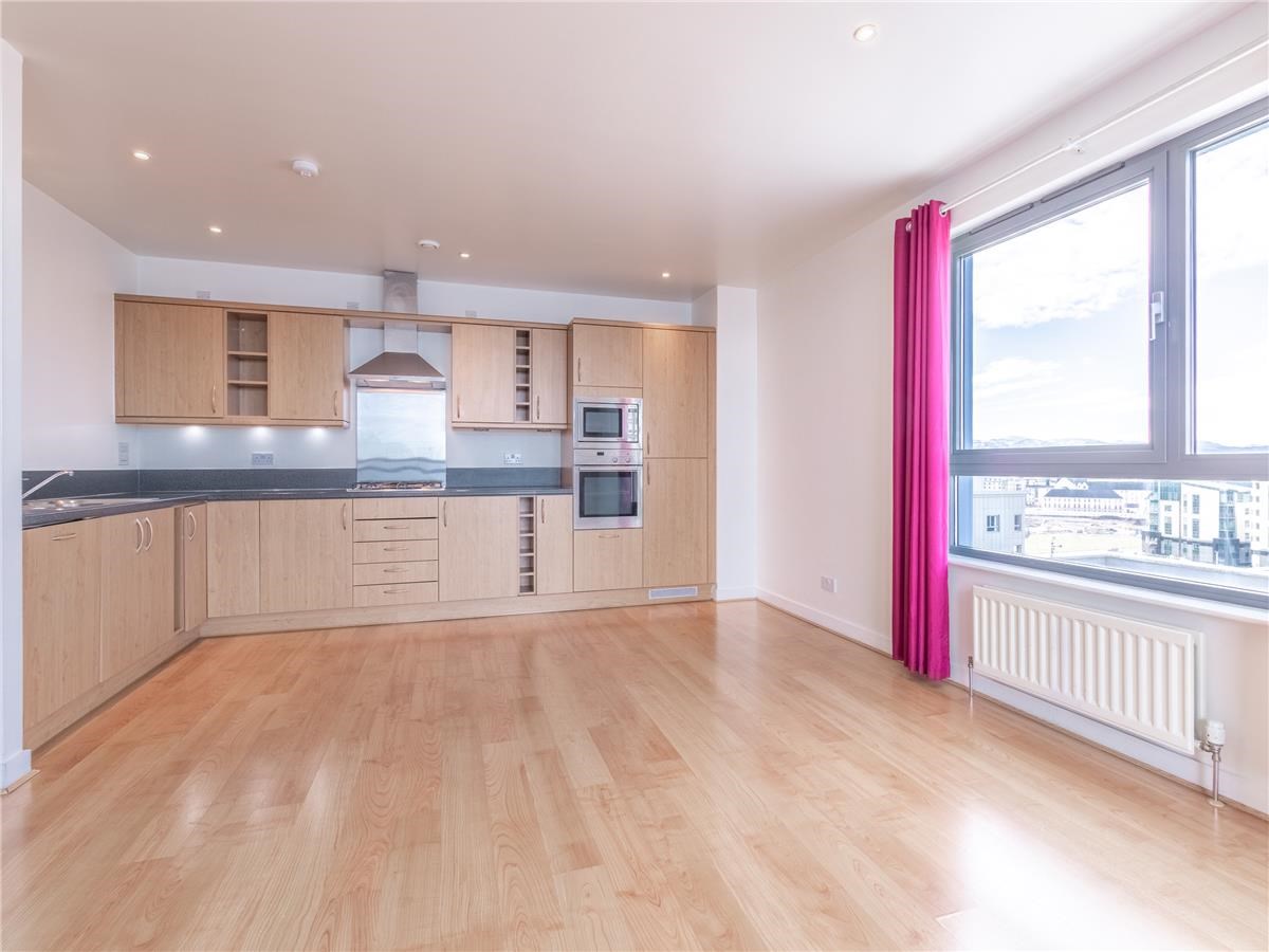 Spacious and well presented, three bedroom, 8th floor apartment with a private balcony, offering views towards the Forth. The property is set in a modern, factored and lift-served residential development, located in the Newhaven area, to the north of Edinburgh city centre. Serving each room within, the entrance hall has the entry-phone handset and three storage cupboards, one of which houses a washing machine. Affording access to a private balcony, the exceptionally bright living/dining/kitchen features laminate flooring, inset downlighting and ample space for living and dining furniture. Set to the rear of the living area, the kitchen is fitted with contemporary units with stone effect worktops and a stainless steel sink. The master bedroom features a walk-in wardrobe and an en-suite shower room, whilst bedroom 2 is similarly well finished, and includes a built-in wardrobe. Bedroom 3 is similarly set up without built-in wardrobe. Set internally off the hall, the bathroom is fitted with a modern three-piece suite with tiled splashbacks and a ladder radiator.