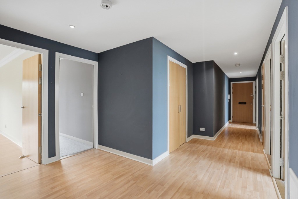 Set on the first floor, the property opens into a spacious hallway with three built-in cupboards providing excellent storage. To the left of the property you find a double bedroom with built-in wardrobes, a modern main bathroom with shower over bath and a second double bedroom.