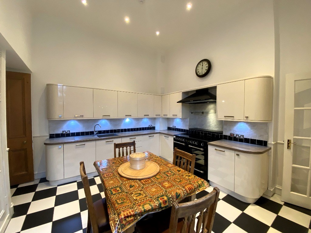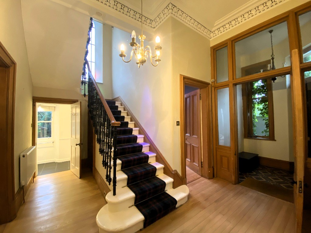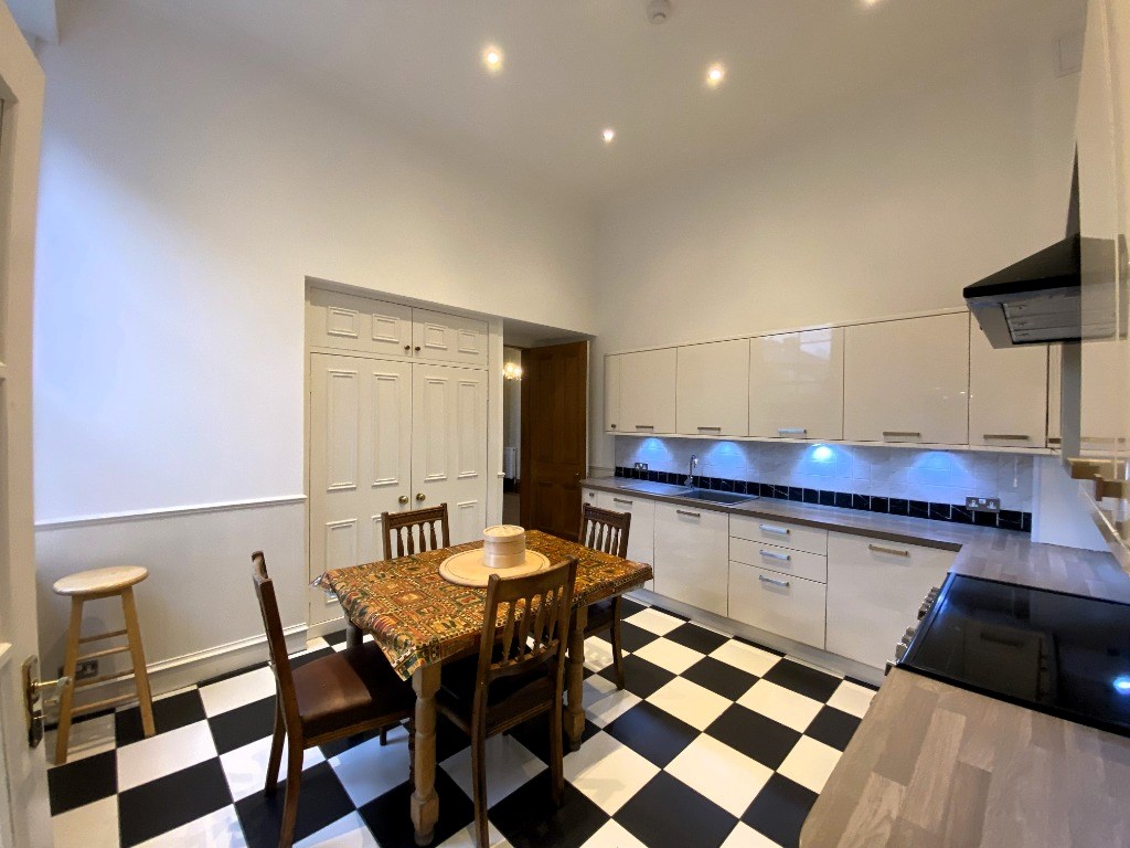 The ground floor compromises of a vestibule with an ornate tiled floor leading to a beautiful hallway and staircase to the first floor, a spacious lounge with window seat, a fully fitted modern kitchen diner, a large utility room with study above, a double bedroom with dual aspect windows, a mirrored gym/playroom and a shower room.