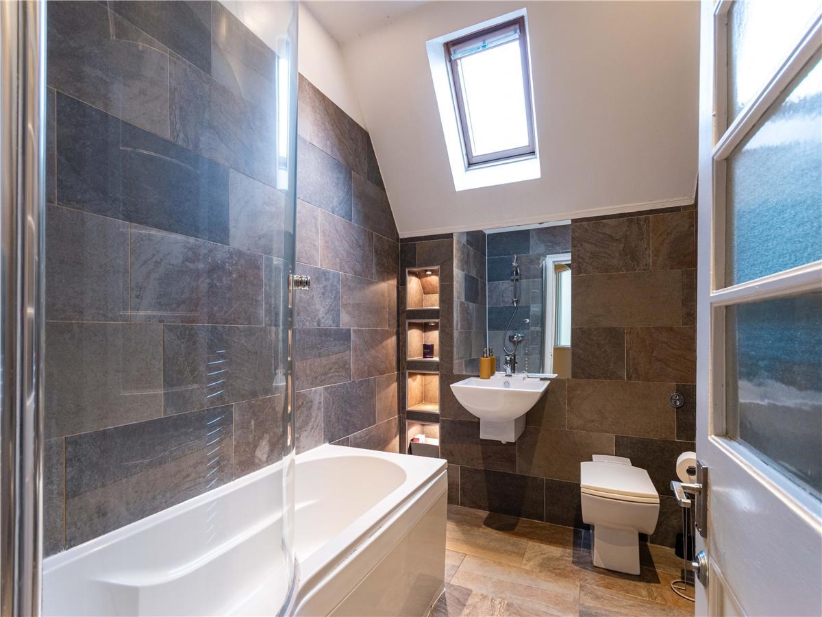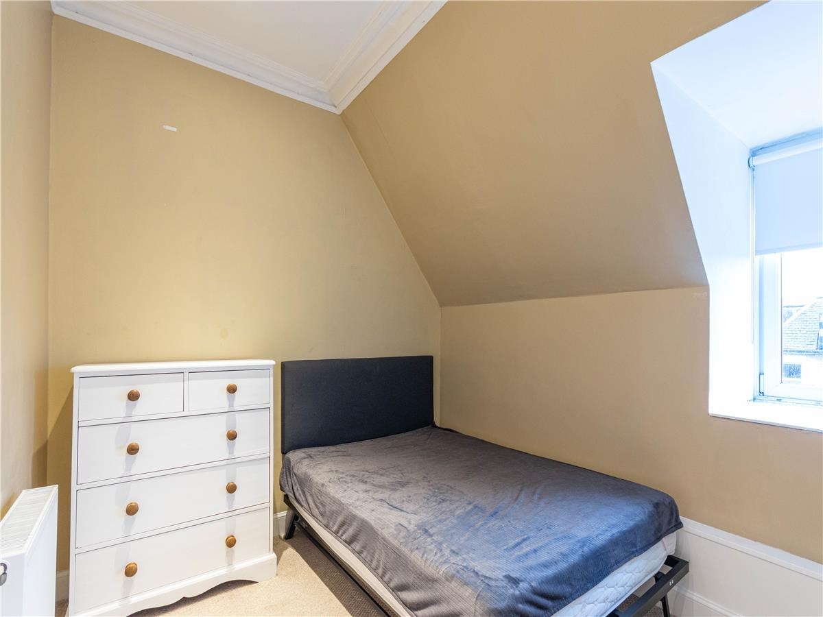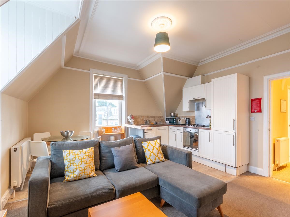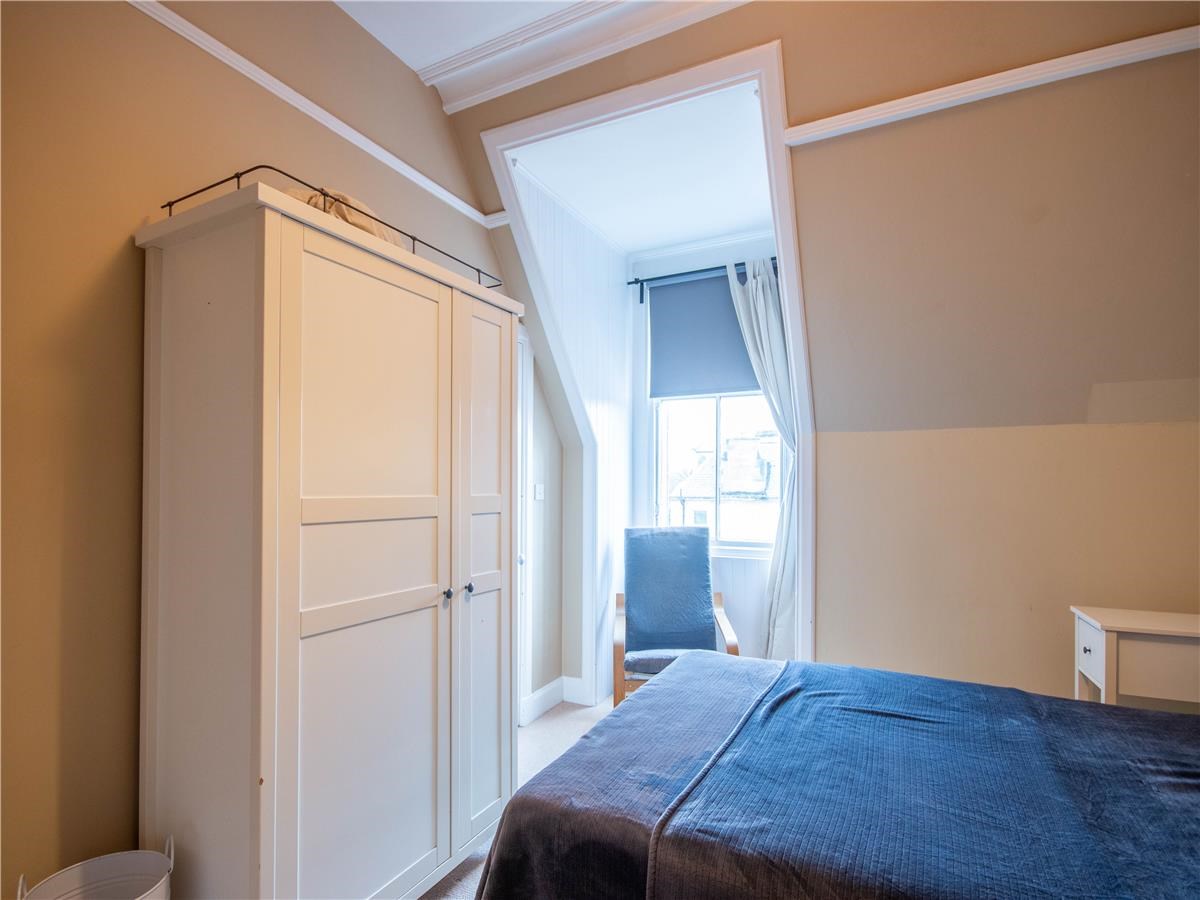 The spacious property is a converted attic flat (2nd floor) in a well-maintained stair of 3 properties. It has tasteful and modern décor and furnishings throughout, and features