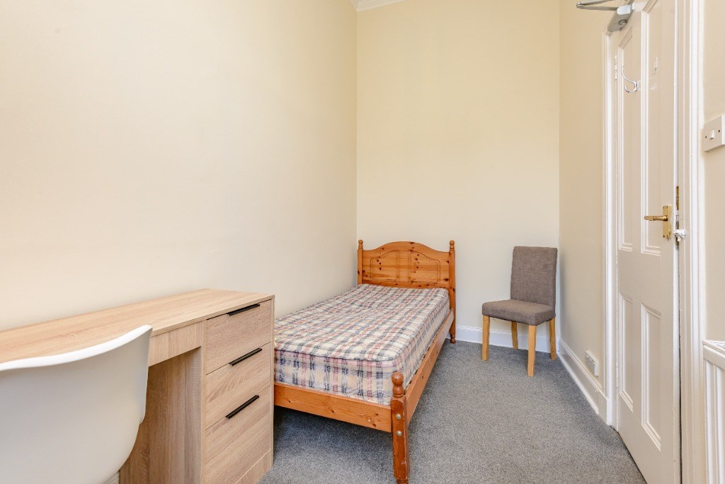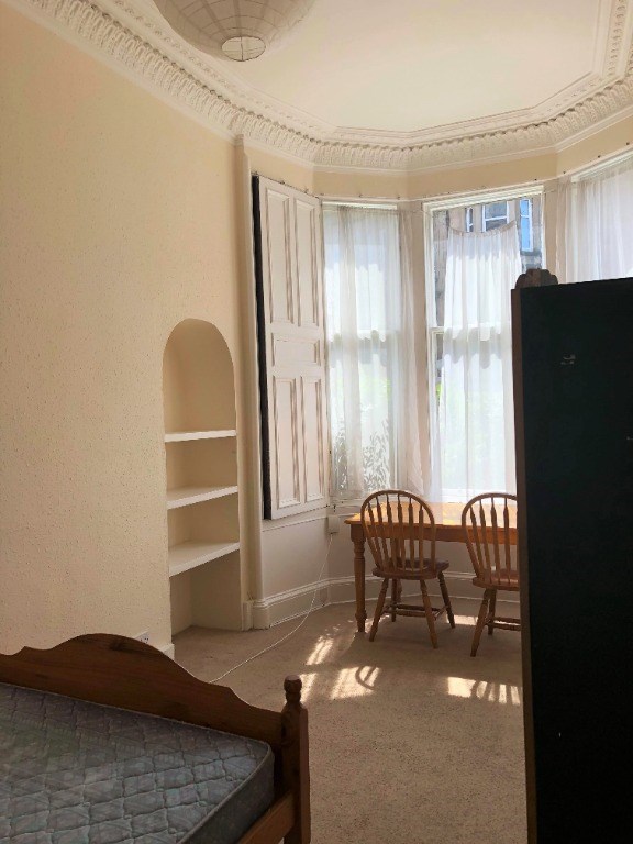 Spacious main door, well furnished ground floor flat in excellent location for local amenities and University. This HMO property compromises 2 double bedrooms, 1 generous single bedroom, a large kitchen/living area, recently refurbished wet room. Further benefits include gas central heating, ample storage throughout and a private front garden.