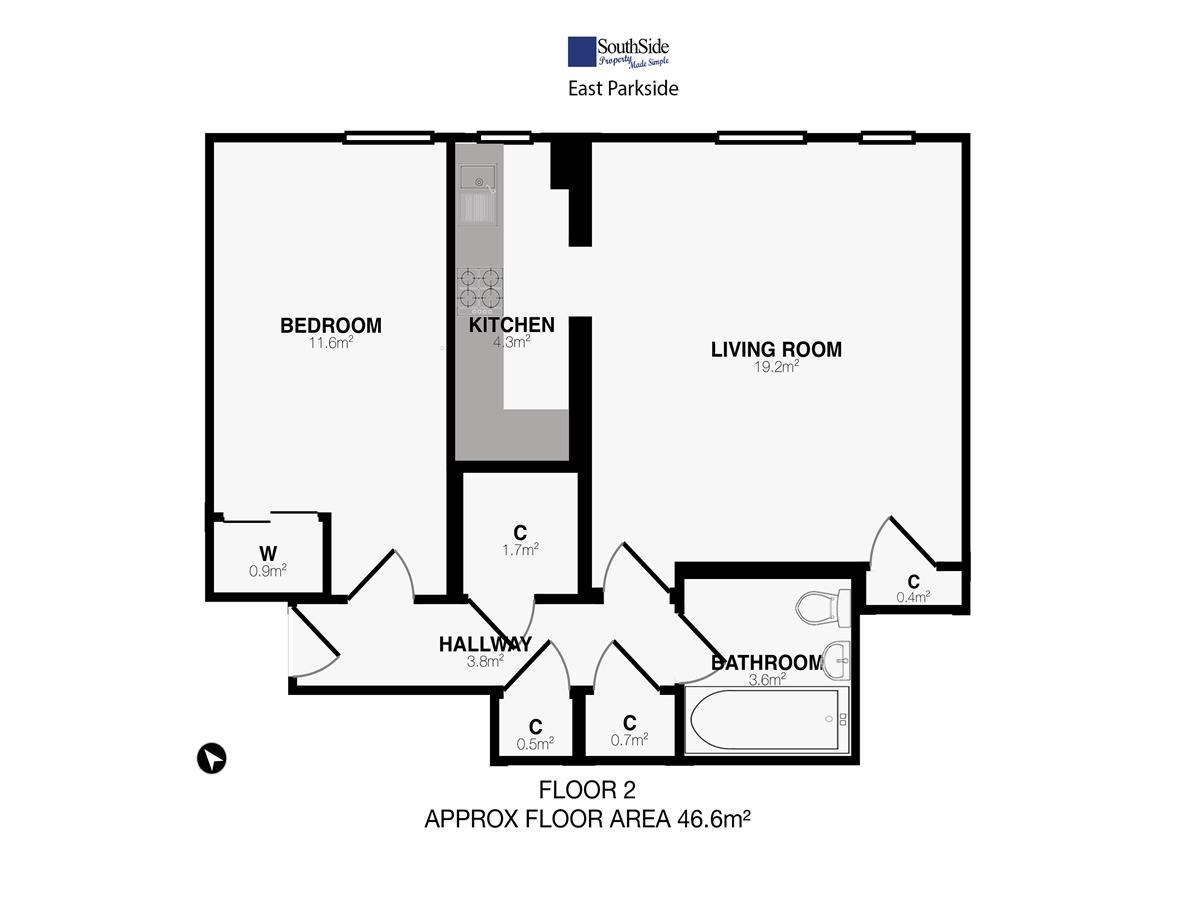 ~Total floor area = 60m²