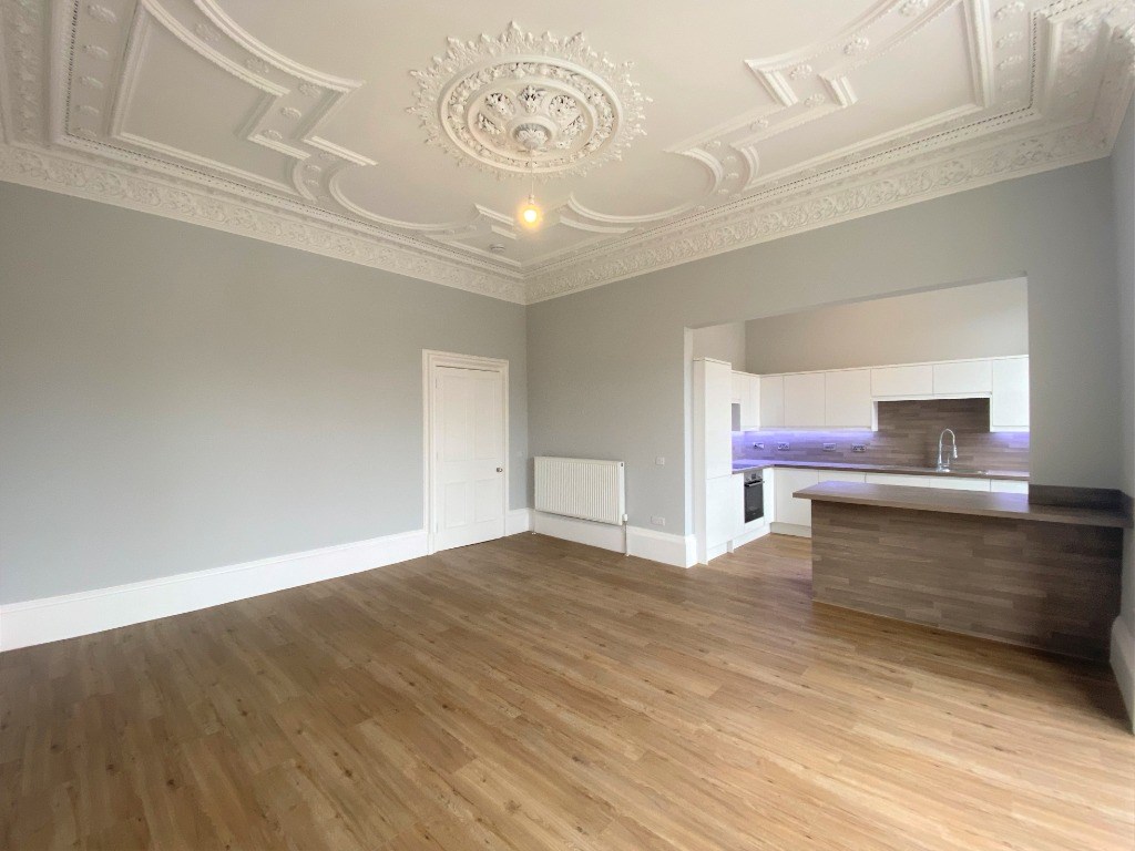 The welcoming entrance hall leads to a large, open plan kitchen/sitting/dining room which has a wide bay window, ornate plasterwork ceiling and intricate cornicing. There are two good sized double bedrooms to the back of the property and a fully tiled shower room.