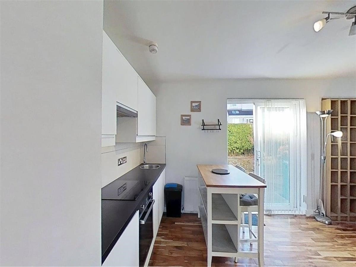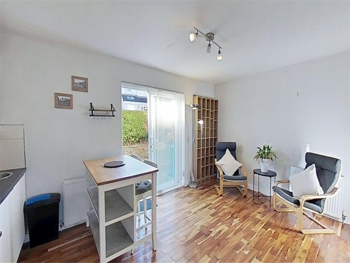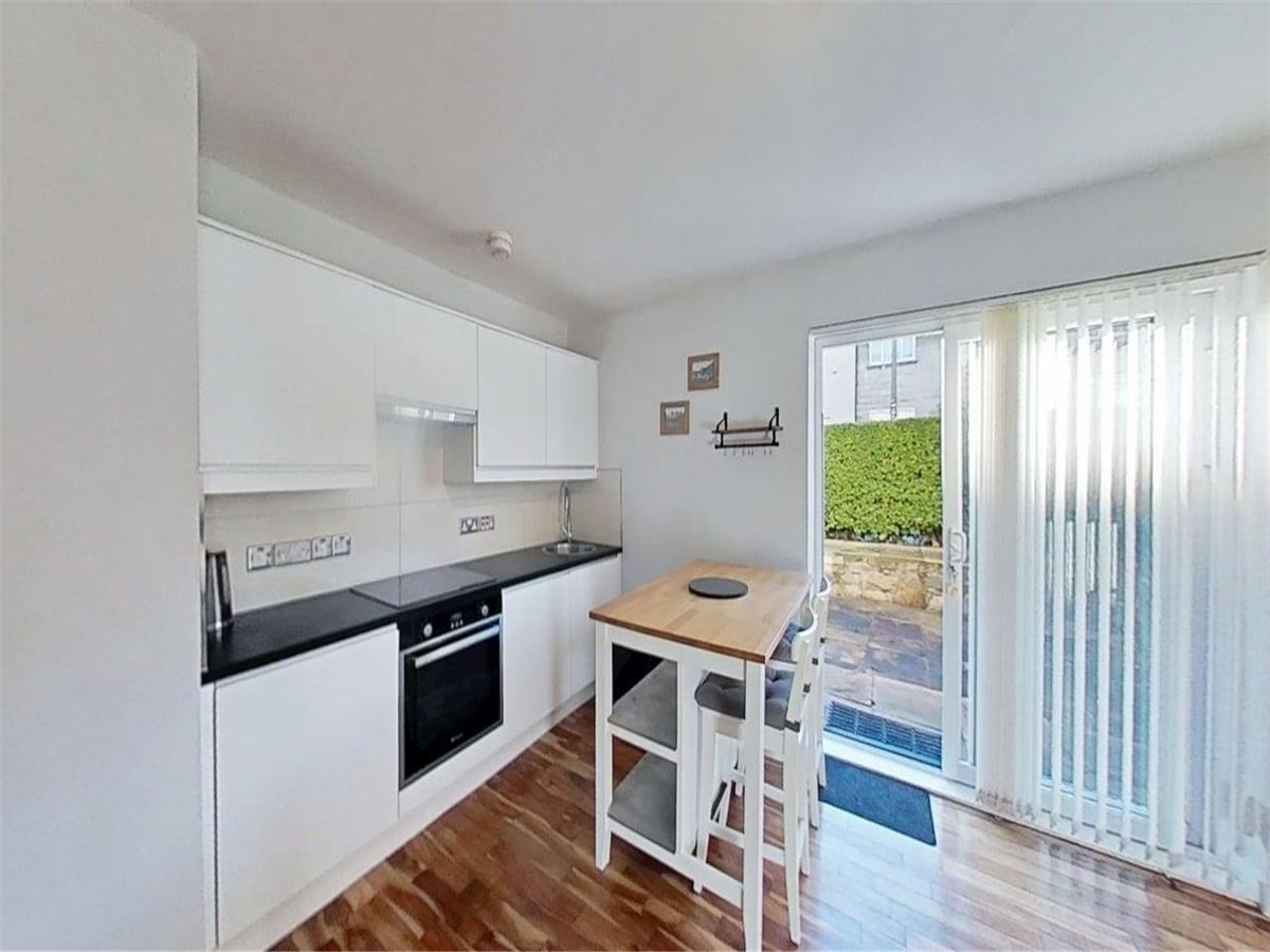 The welcoming entrance hall sets the tone for the rest of the property with its tasteful neutral decor. The spacious open-plan living room and kitchen provides a contemporary space for modern living, featuring an electric wood burner, breakfast bar, and patio doors leading out to a large private patio area at the front of the property, perfect for relaxing or entertaining. The fitted kitchen offers a good range of wall and base units along with quality integrated appliances. There are two generous double bedrooms, both benefiting from built-in wardrobes providing excellent storage. A third double bedroom offers flexibility to be used as a guest room, office, or study. The fully tiled bathroom is fitted with a sleek three-piece suite comprising a bath with shower over, heated towel rial and a full mirrored cabinet. An external utility cupboard, conveniently located next to the flat door, houses the washer dryer and provides space for additional household items.
