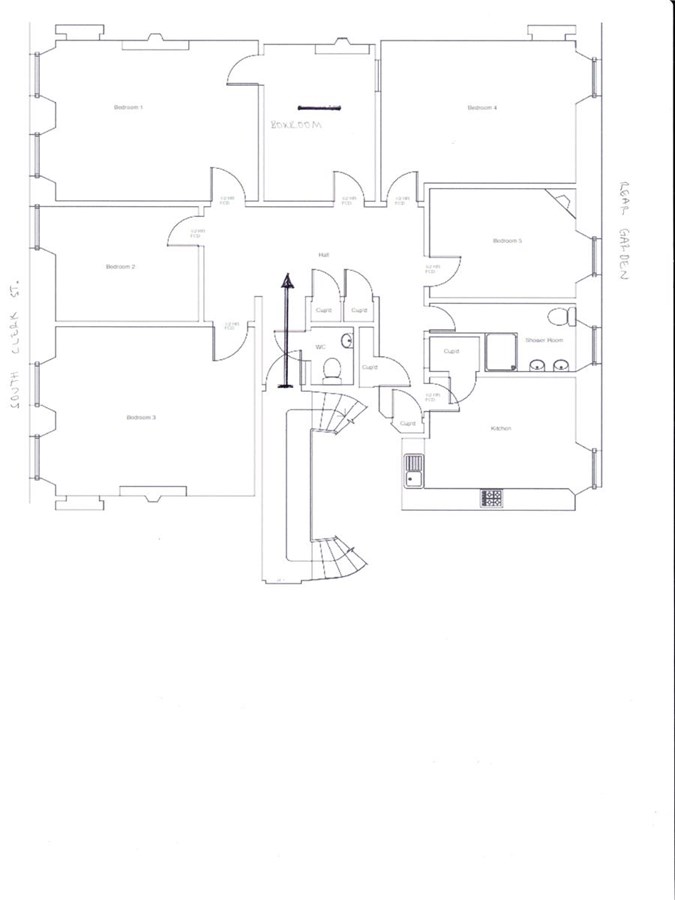 5 bedrooms, kitchen/dining room, living room, bathroom, W.C.
