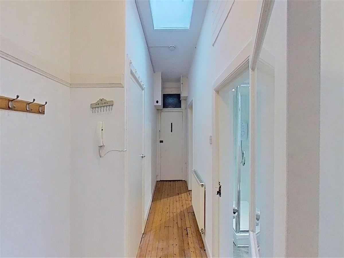 The property comprises an entrance hallway with useful storage, a bright open-plan sitting/dining room and kitchen, two well-proportioned double bedrooms, and a modern shower room. Further benefits include gas central heating, a secure entry phone system, access to a shared rear garden and street zone parking.