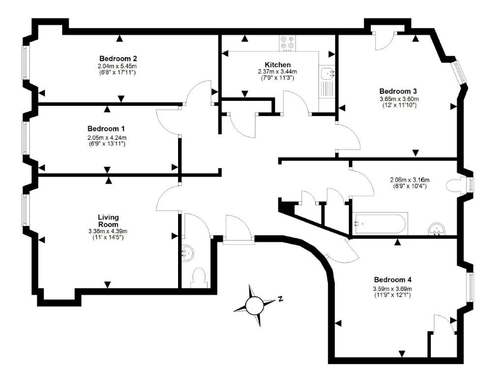 The four double bedrooms come furnished with a double bed, a wardrobe, a chest of drawers, a desk and a chair.
