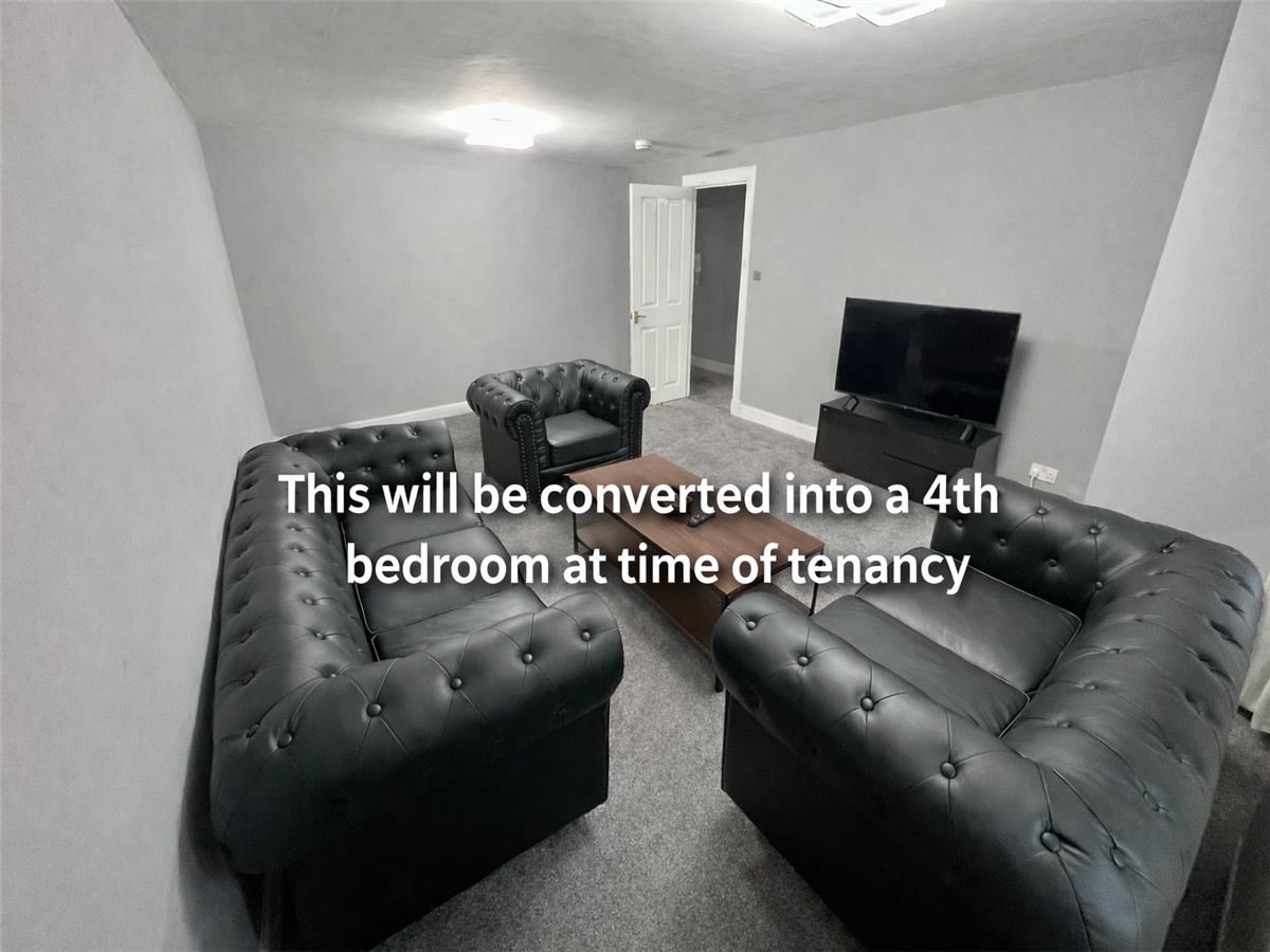 The property comprises four good-sized bedrooms, a modern fitted kitchen, and a bathroom. Please note that there is no separate living room. The space shown as the living room in the photographs will be converted into an additional bedroom prior to the start of the tenancy, creating four dedicated bedrooms for occupants.