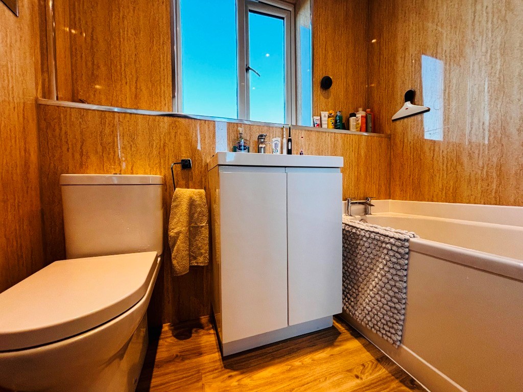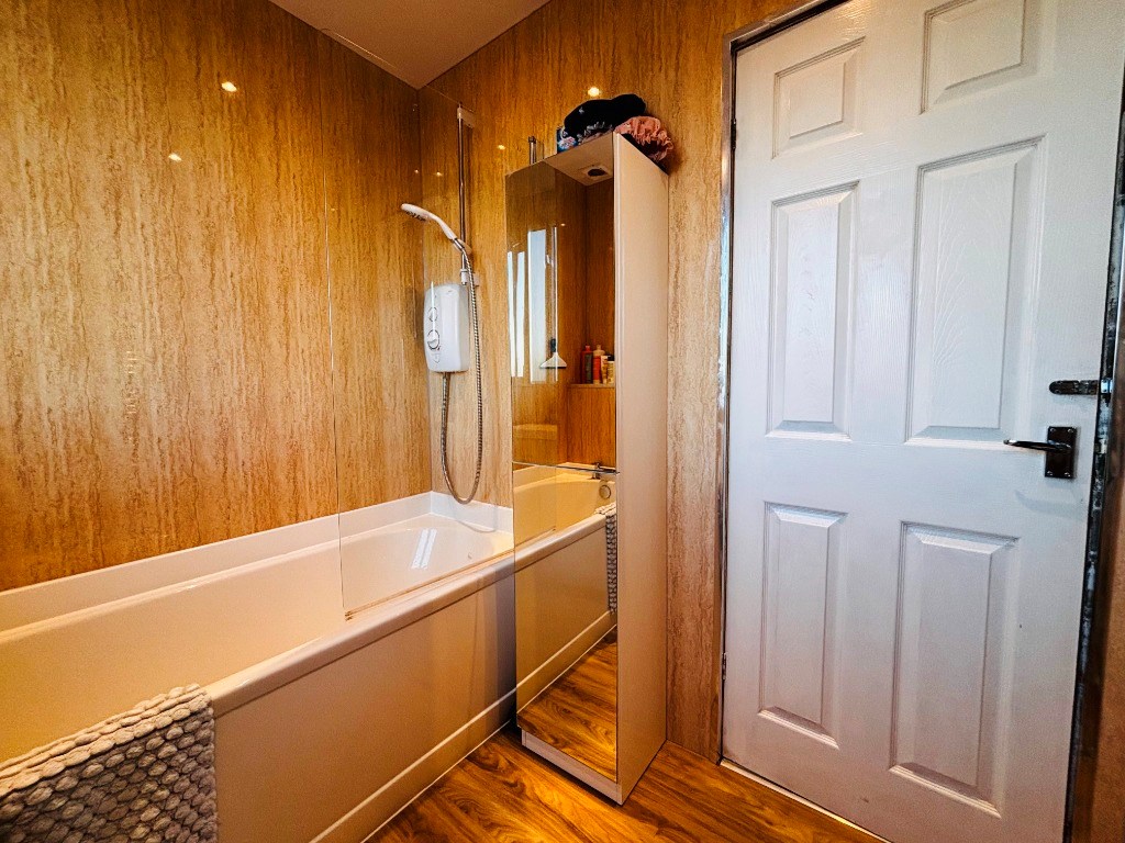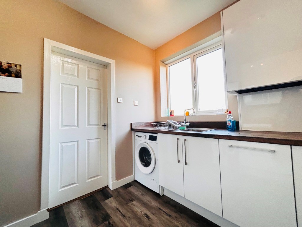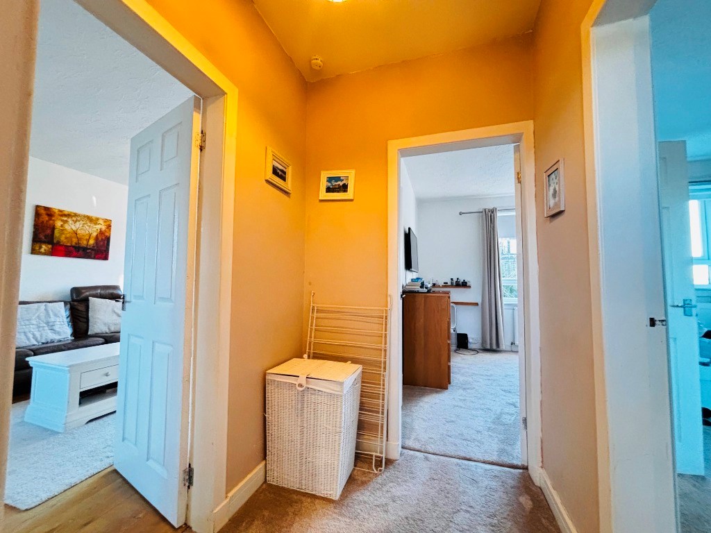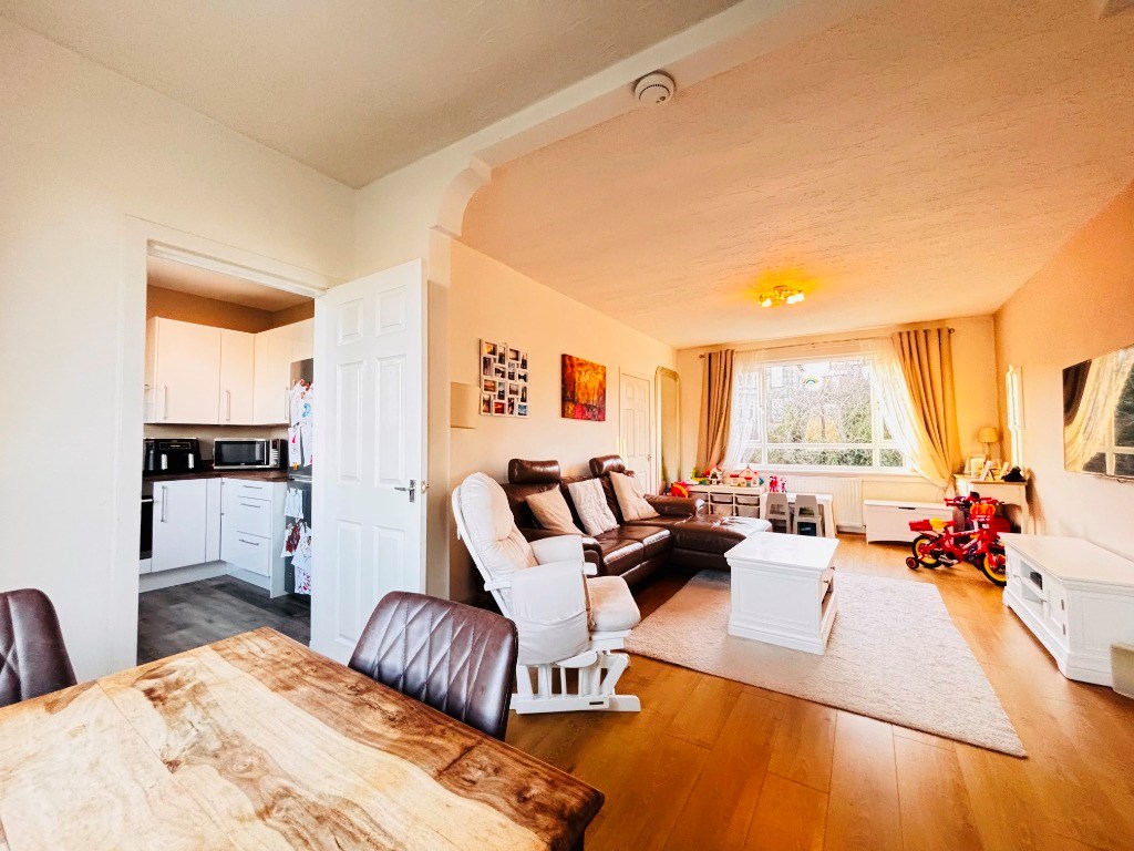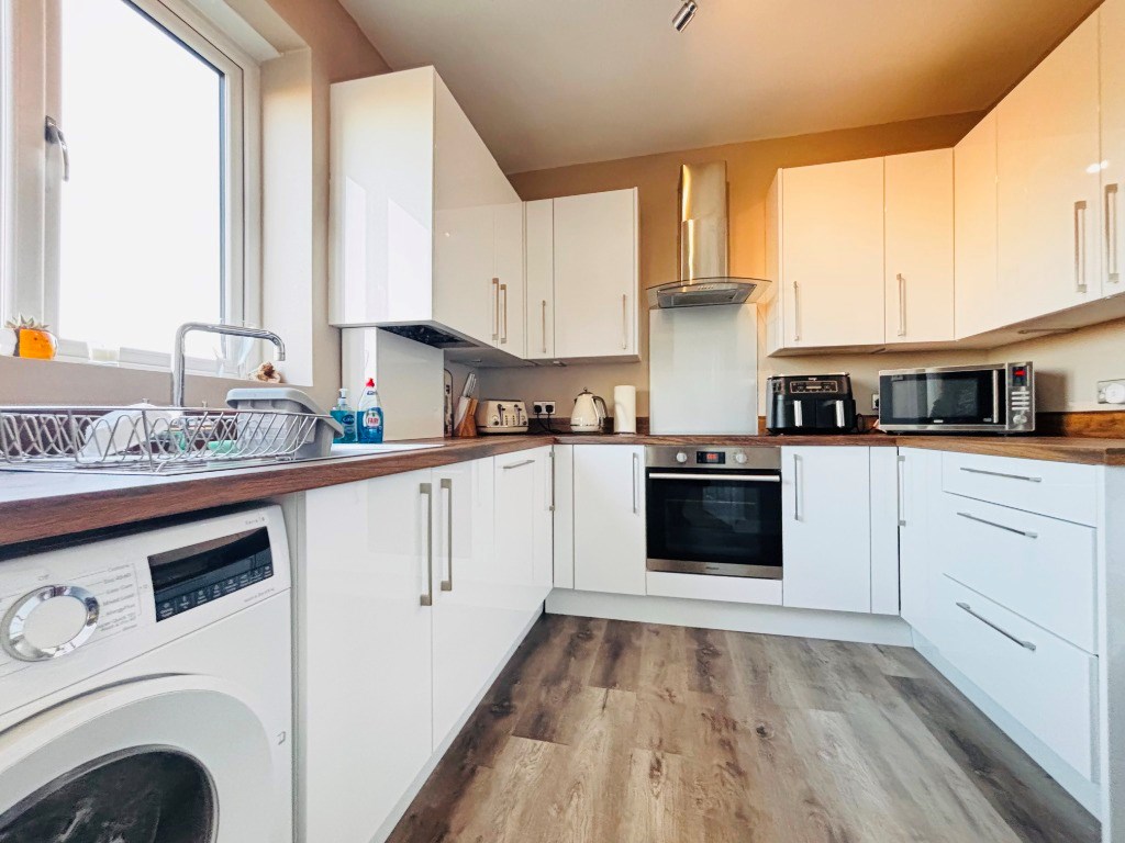 Internal accommodation comprises entrance hallway with storage cupboards off, large, and bright living area with dining area to the rear, fully fitted modern kitchen with a range of appliances. There are two spacious double bedrooms, and bathroom with three-piece suite and shower positioned over bath.