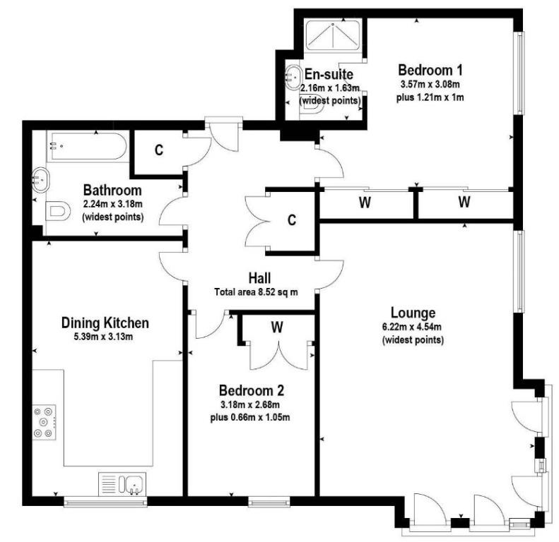(P2574) A spacious and beautifully presented unfurnished flat in the heart of Newlands, available now. The property opens into a generous reception hall that sets the tone for the space throughout. A modern dining kitchen provides ample room for cooking and entertaining, while two well-sized double bedrooms include a master with ensuite shower room. A contemporary family bathroom completes the accommodation. The standout feature is the expansive, light-filled lounge, enhanced by a Juliette-style balcony that brings in abundant natural daylight. Additional benefits include new carpets throughout, double glazing, gas central heating and a private allocated parking space.