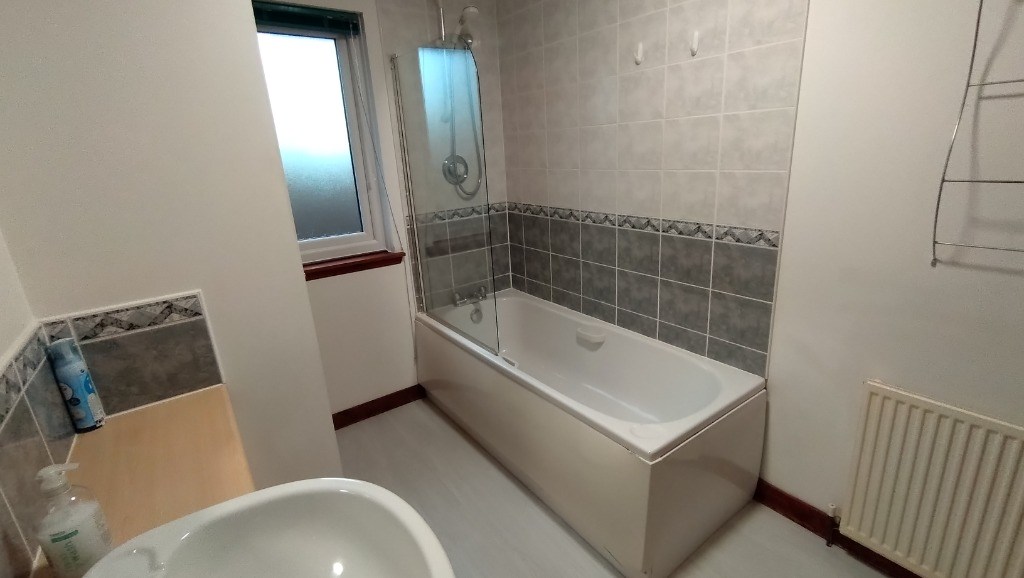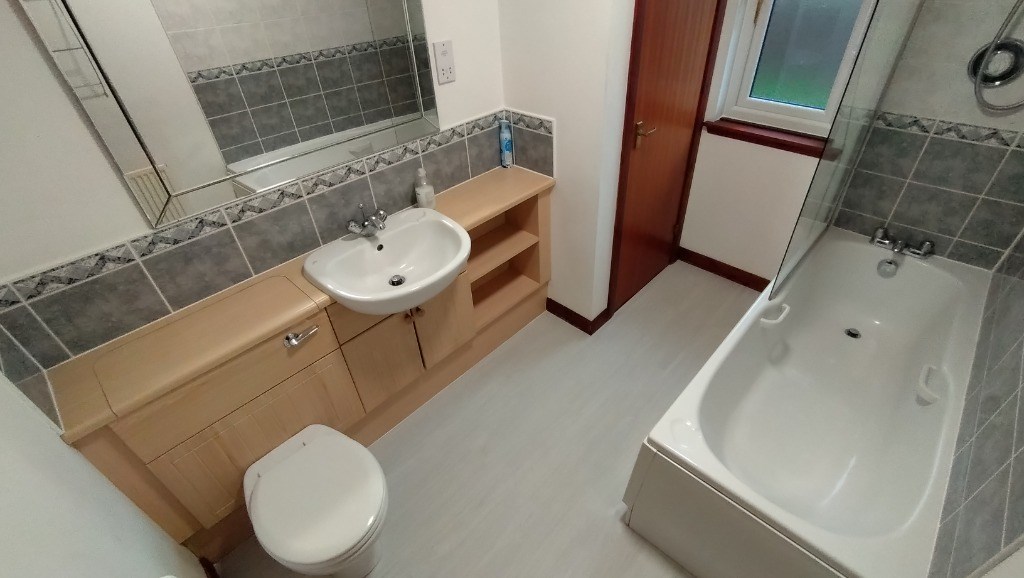 Upstairs, you will find 3 bedrooms and the main bathroom as well as access to the loft space. The main bedroom is fully furnished with a double bed and ample built in storage space. The second bedroom is unfurnished and also has built in storage. The 3rd, small bedroom is furnished with a child sized bed. The bathroom consists of a bath with shower in place along with the standard wash hand basin and toilet.