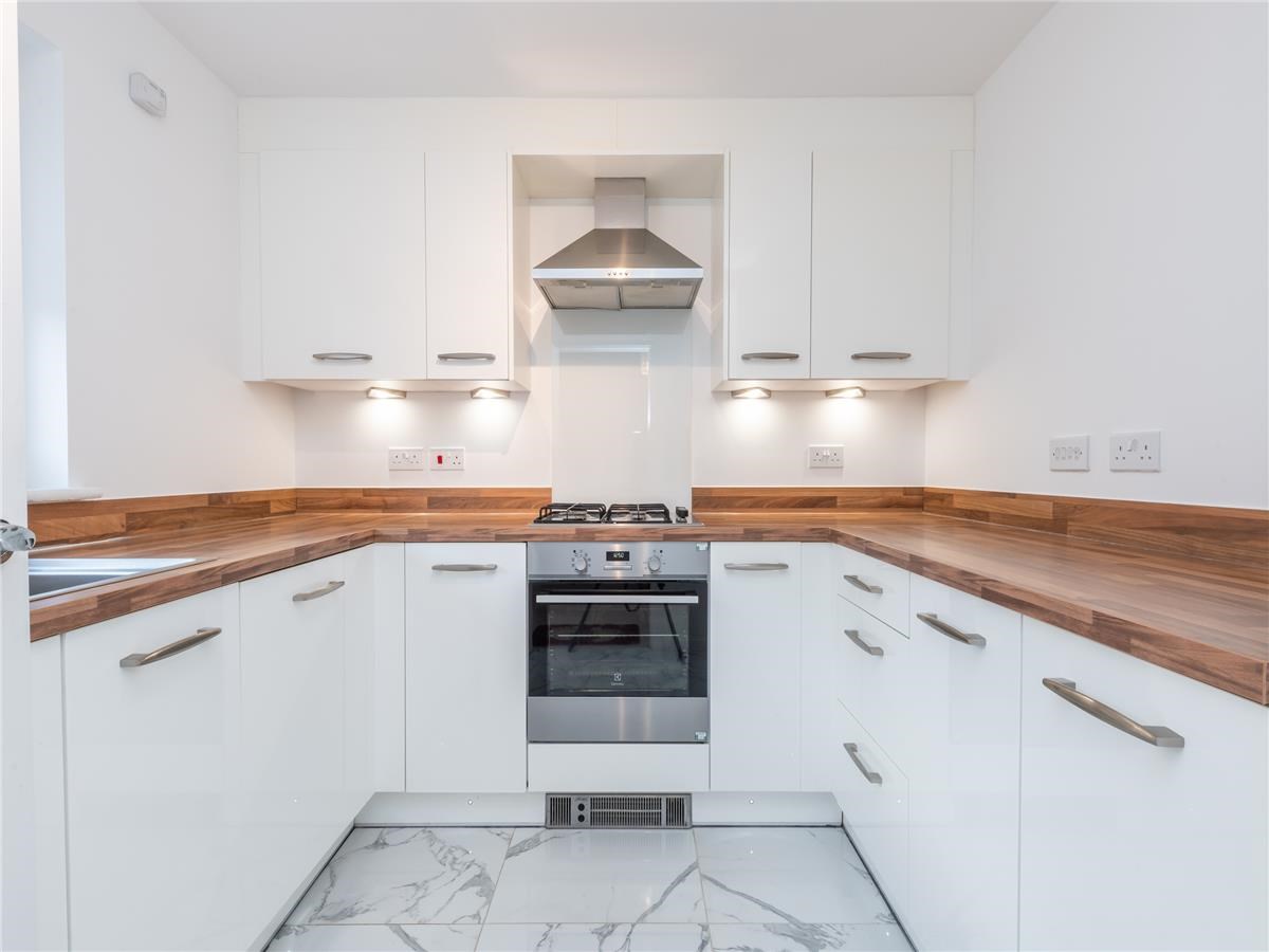 ~ Kitchen: Modern fitted kitchen with a good range of wall and base units, integrated appliances, and direct access to the rear garden.