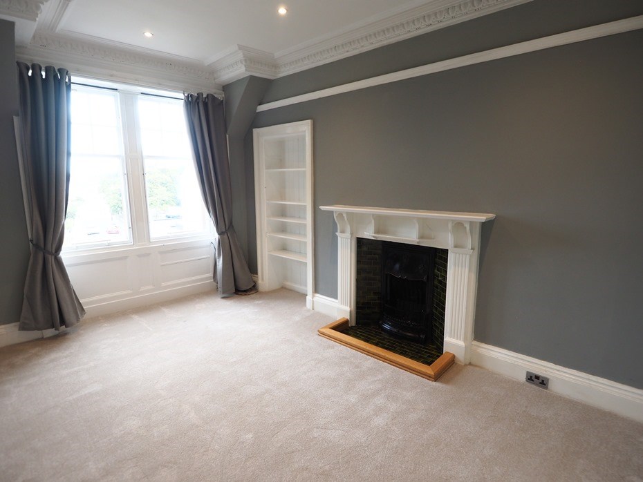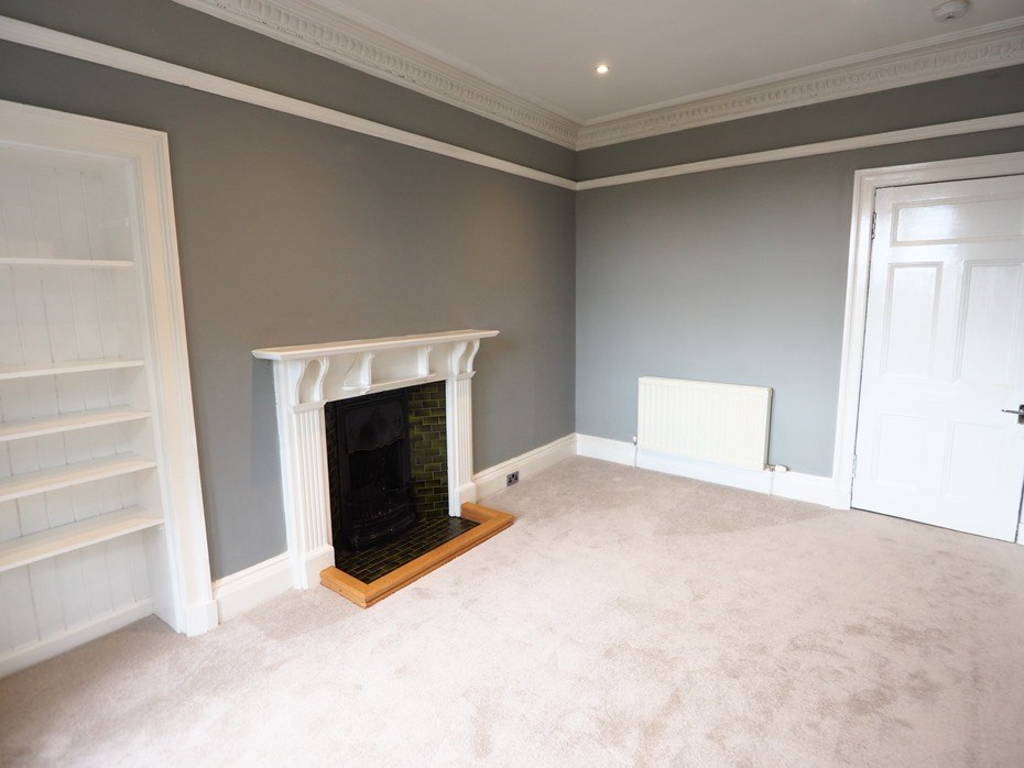 - Living Room with beautiful cornicing, a feature fireplace with mantlepiece and recessed shelving; (NB. fireplace not for use)