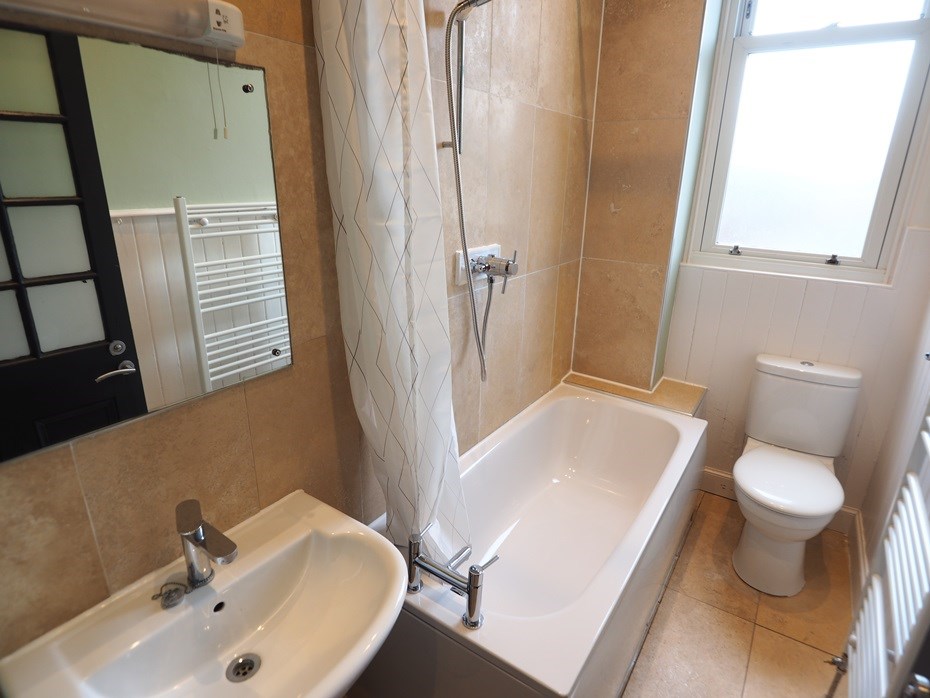 - Bathroom with shower over bath.