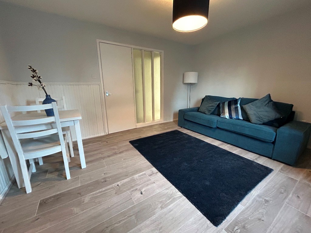 Refurbished Interior: The flat features a contemporary design with high-quality finishes. Which includes includes a bathroom, flooring, and modern furnishings providing a bright and welcoming atmosphere.