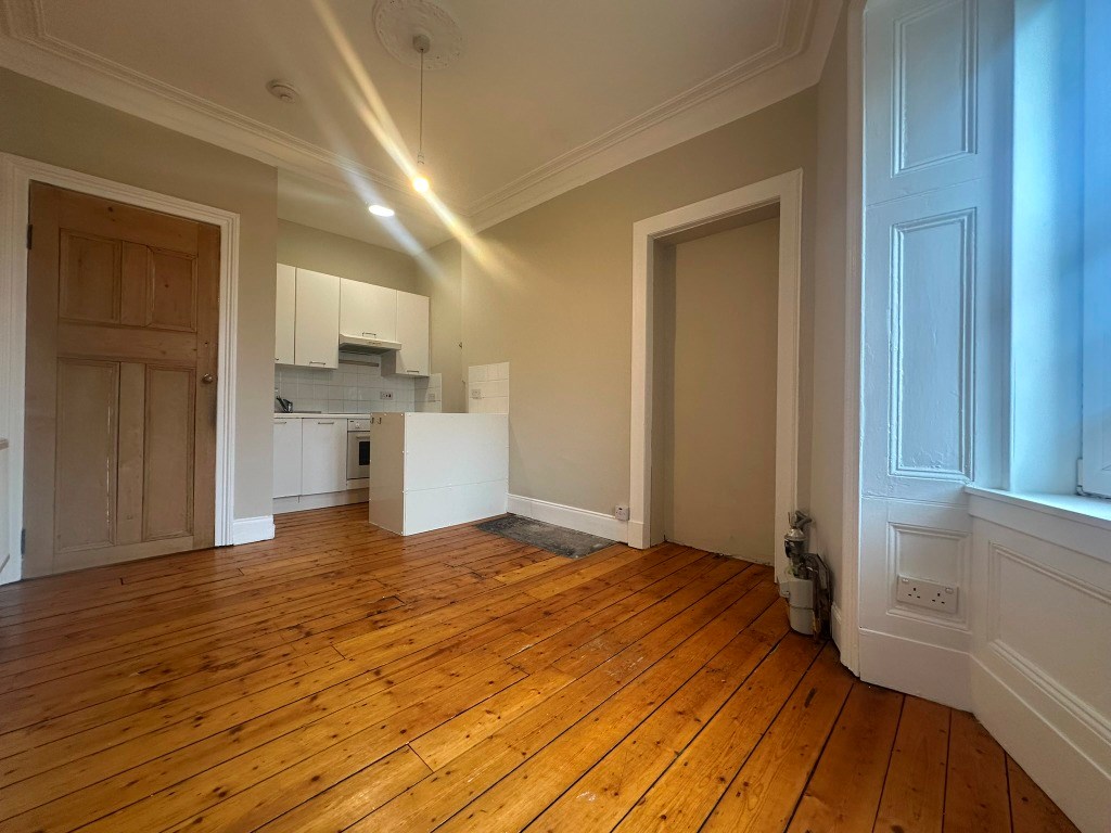 This top floor one bedroomed traditional tenement property benefits from gas central heating and double glazing, making this an economical home. The layout extends to entrance hallway, double bedroom, fitted kitchen which is open plan to the lounge, and a bathroom with over bath shower. There is also a separate utility room / laundry, and a good sized hall cupboard. Further benefits include easy on street parking and security entry. EPC rating: D. Landlord Registration Number: 430361/260/19191 . Letting Agent Registration Number: 1903071.