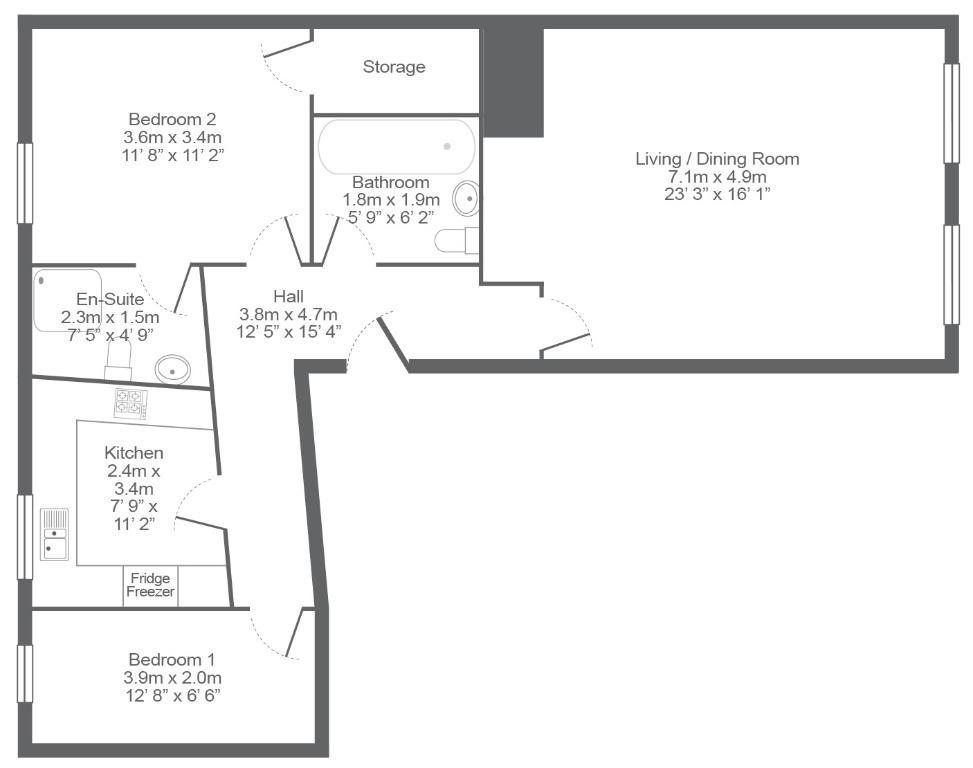 Accessed via secure entry, internally the accommodation comprises of welcoming 'L' shaped reception hallway leading to all rooms. The extremely spacious lounge / dining room has two large picture windows flooding the room with natural light and which provide a delightful outlook over the residents “Wilton Gardens”. There are two bedrooms, one is more a single in size or could be used as an office/study and the main bedroom has a large storage cupboard as well as an en-suite shower room. The main bathroom is internal and has a modern white three piece bathroom suite with mains powered shower over the bath. Finally, the kitchen which has an abundance of modern white gloss units and comes complete with appliances including washing machine, fridge freezer, gas hob, electric oven and dishwasher.