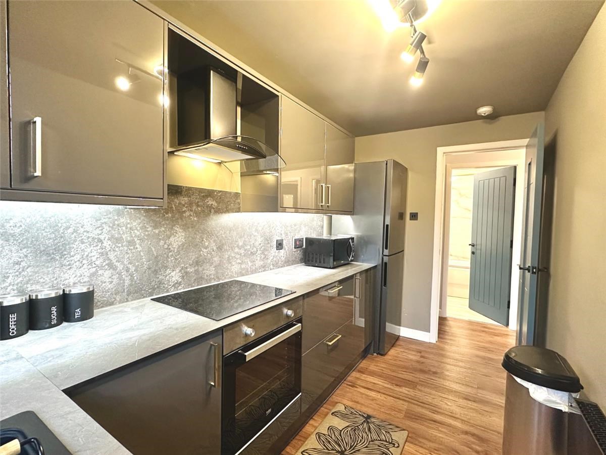 The flat is entered via a reception hall (good storage,) which gives access to all rooms.. The bright & airy "L" shaped front facing lounge/diner, which is tastefully decorated is extremely bright due to the window formation. The kitchen is simply a dream with integral white goods to include, oven, hob & hood. Fridge freezer and washing machine. The kitchen style is perfect for the discerning renter to cook up a storm.