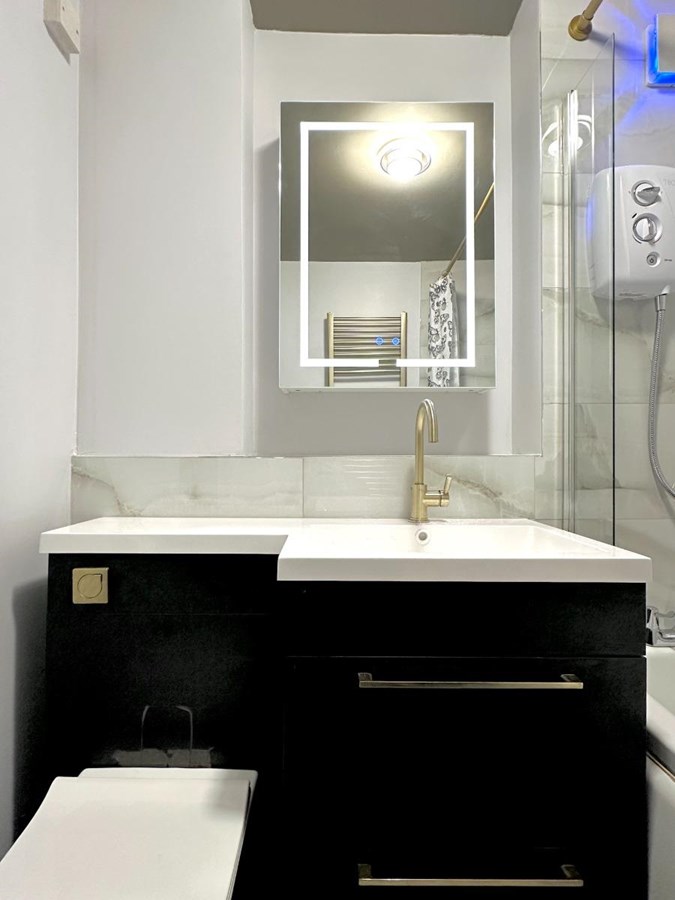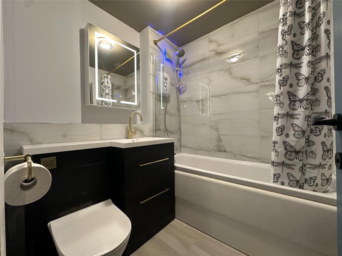 Double bedroom (fitted wardrobes) is tastefully decorated, bright & airy. Beautiful bathroom with electric shower over the bath. Electric vanity mirror which is screaming to be asked "who is the fairest of them all " The property is further enhanced with smart electric heating system and double glazing. Secure door entry system allows further security. There is private residents parking to the rear of the property.