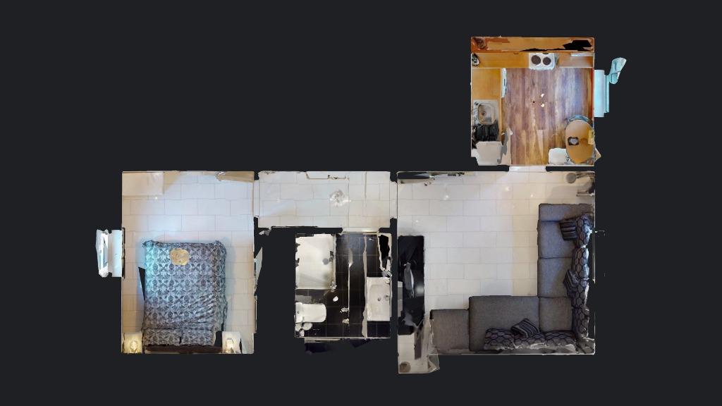 Lounge with a large "L" shape sofa, TV unite and nest of tables