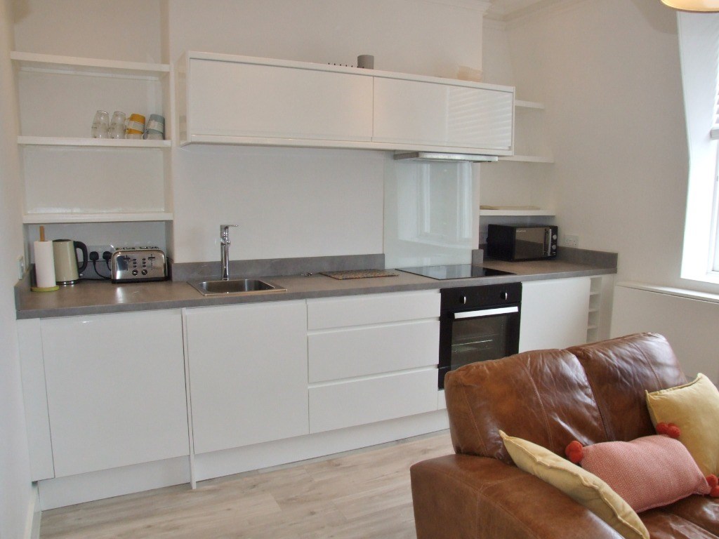 This recently refurbed top floor flat comprises; entrance hallway; open plan lounge/kitchen with washer dryer and integrated fridge; double bedroom; shower room with electric shower.