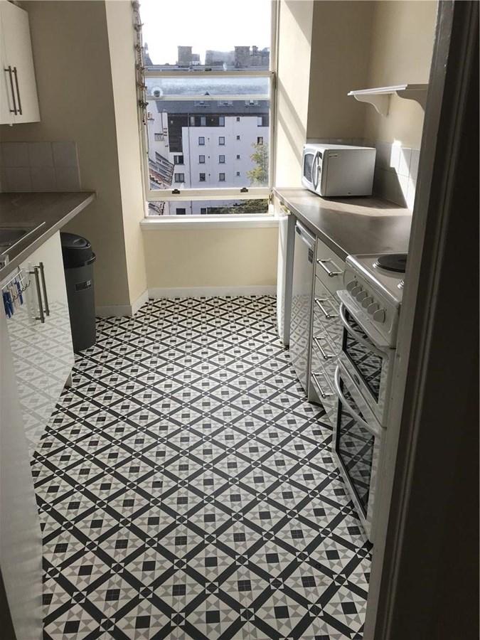 Spacious modern top floor flat with large double bedroom and good storage space. Sunny outlook, looking on to St Giles Cathedral. Very central, but as flat is at the rear of the building is very quiet. Is within easy walking distance of Edinburgh University and town centre. Suitable for postgraduate student.