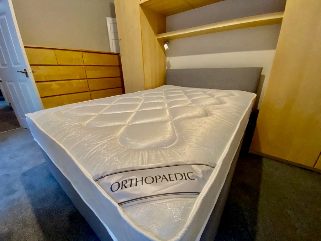 There is a spacious double bedroom with a massive amount of storage and the bathroom has a bath with shower over.