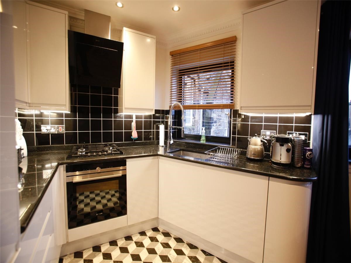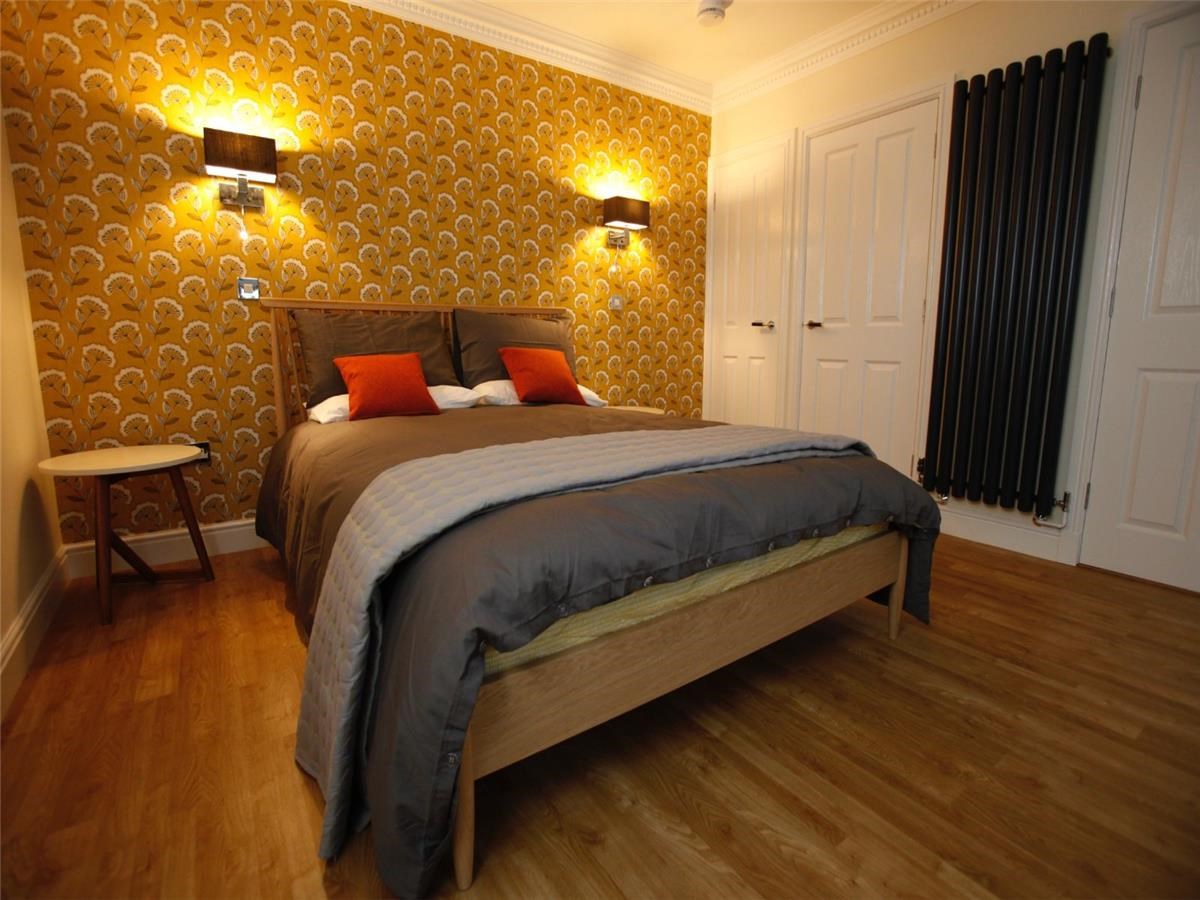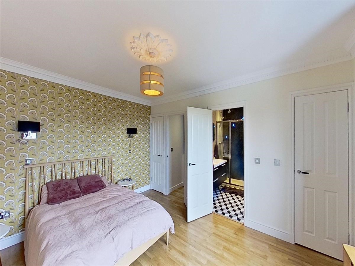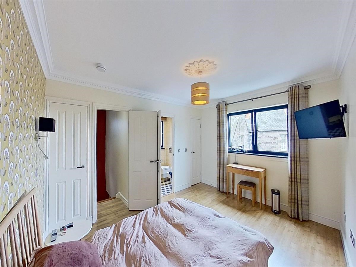 The well-proportioned kitchen/dining area is located on the first floor of the flat. There are also a host of modern-day appliances including integrated fridge/freezer, dishwasher and washing machine. two windows provide an abundance of natural light. The large ensuite bedroom can be found on the upper level. each and is filled with light through the framed view of the Edinburgh skyline.
