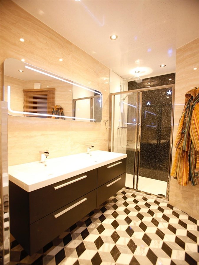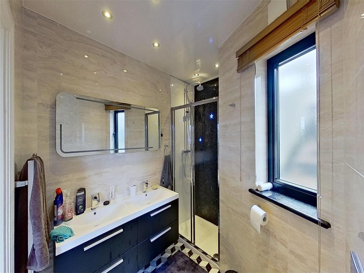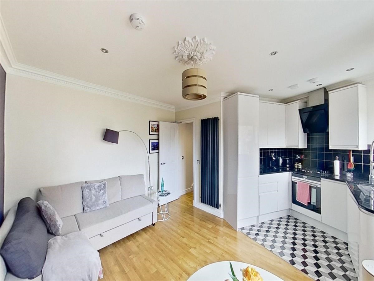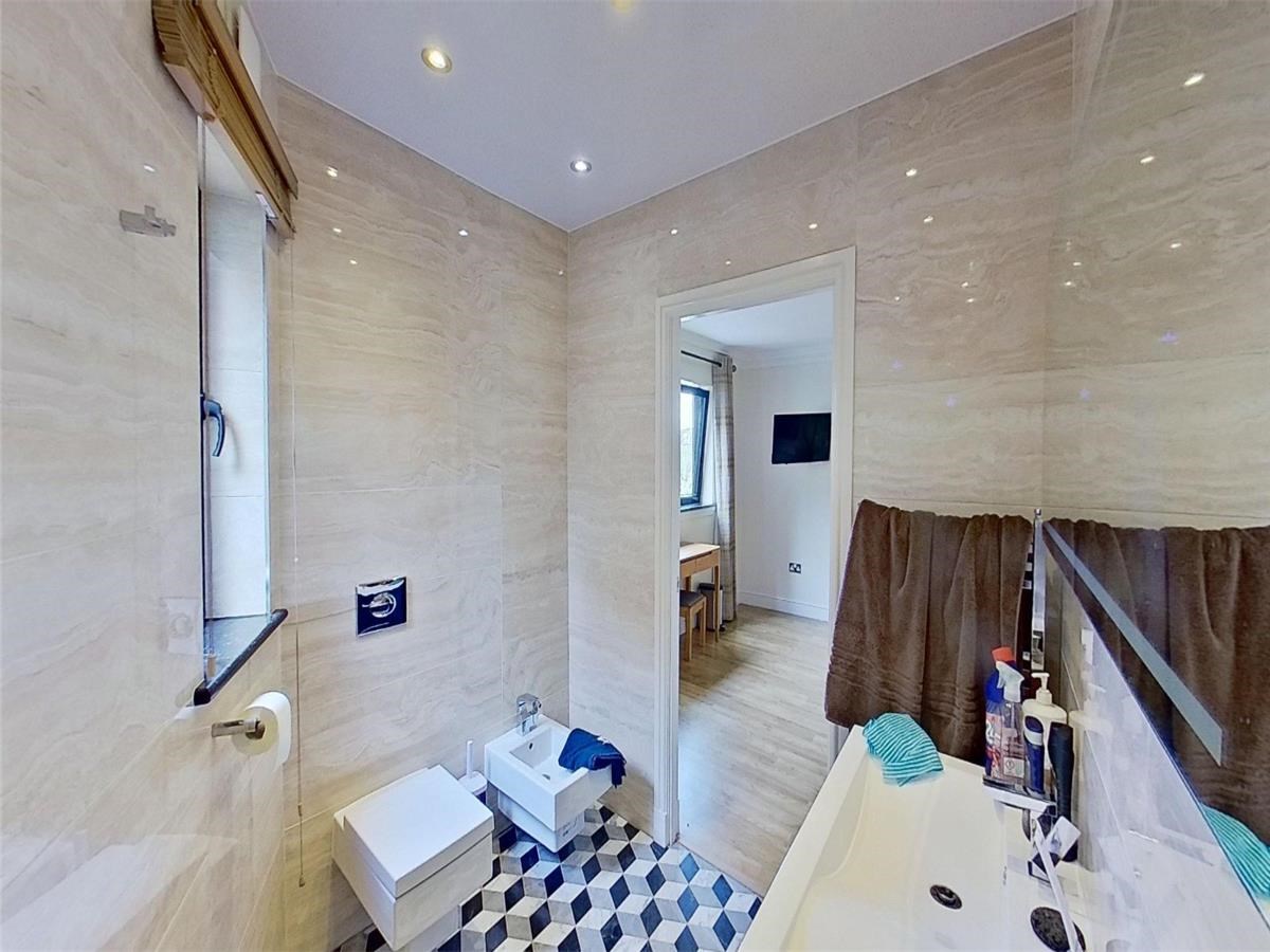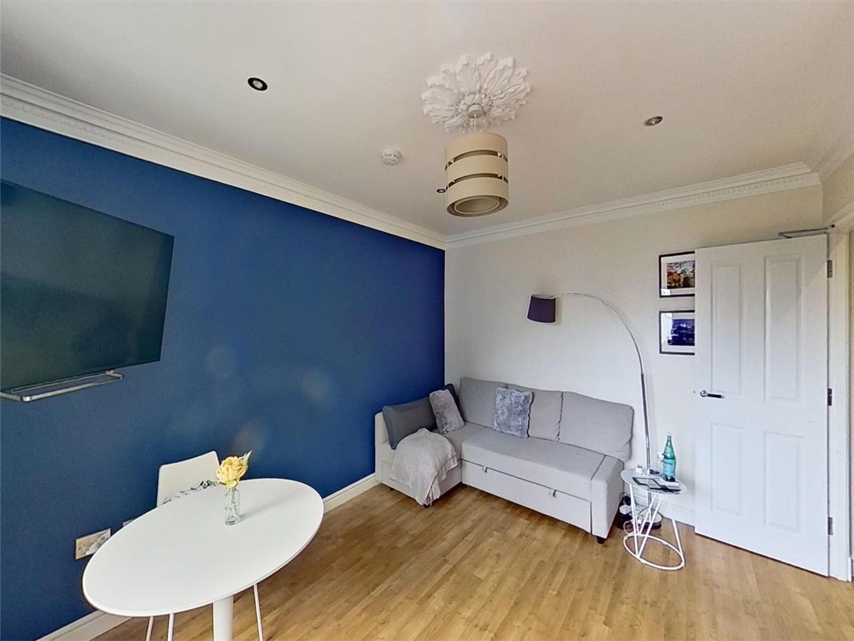 The well-proportioned kitchen/dining area is located on the first floor of the flat. There are also a host of modern-day appliances including integrated fridge/freezer, dishwasher and washing machine. two windows provide an abundance of natural light. The large ensuite bedroom can be found on the upper level. each and is filled with light through the framed view of the Edinburgh skyline.