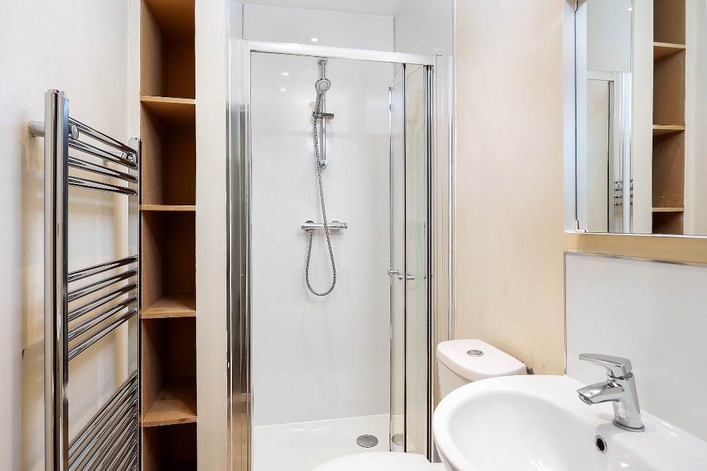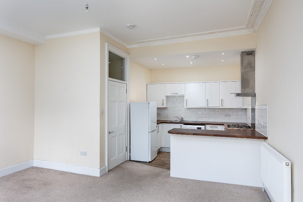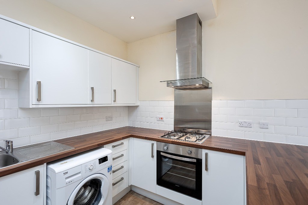The unfurnished one-bedroom flat benefits from central heating and a modern open-plan kitchen and lounge. The kitchen is fitted with sleek white gloss units, a wood-effect worktop, a gas hob, an electric oven, a fridge/freezer, and a washing machine. The lounge area is bright and welcoming, featuring two large windows that allow plenty of natural light. The space is finished with carpet flooring, and a storage cupboard is conveniently located in the hallway. The shower room includes a heated towel rail for added comfort. Ideal for those seeking a well-connected home in a vibrant and characterful location.