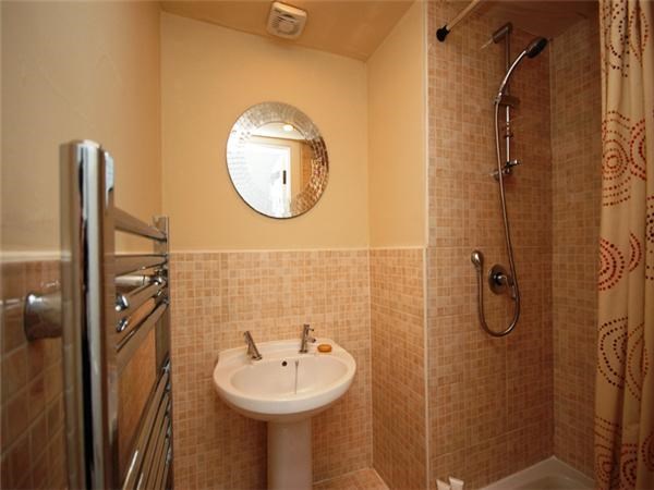 ~Tiled shower room with mains shower and wash-hand basin