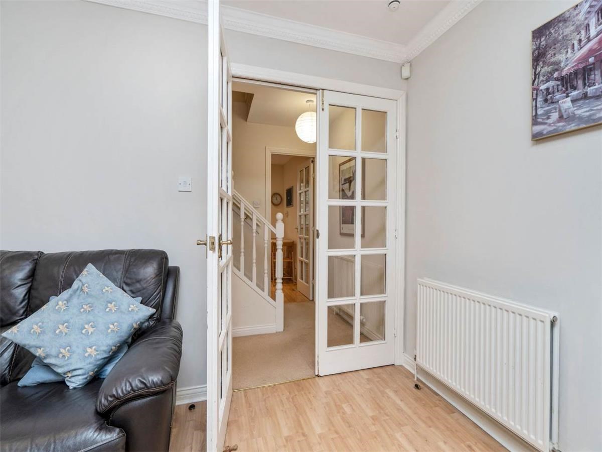 Internally the property extends over three floors comprising: two double bedrooms with fitted wardrobes, large living room with dining table, modern dining kitchen with integrated appliances, separate shower-room and bathroom, and generous storage space.
