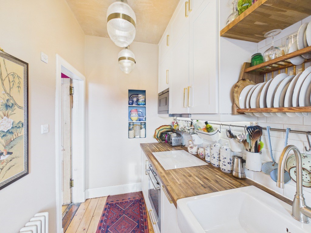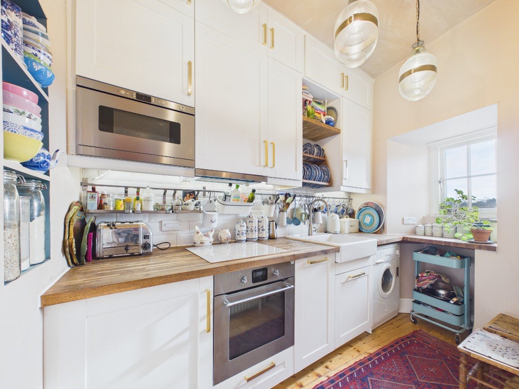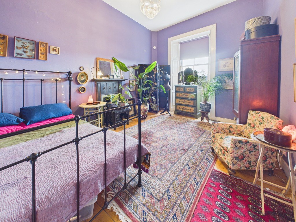 This colourful property comprises of: a welcoming entrance hall with 2 storage cupboards, a very spacious double bedroom, a large livingroom with a separate modern kitchen off the livingroom, kitchen features slimline dishwasher, fitted microwave and fridge with freezer drawer, a modern tiled bathroom with shower cubicle. Along with beautiful views and fantastic location, the property boasts stunning period features including pulley for clothes drying and ornate cornicing.