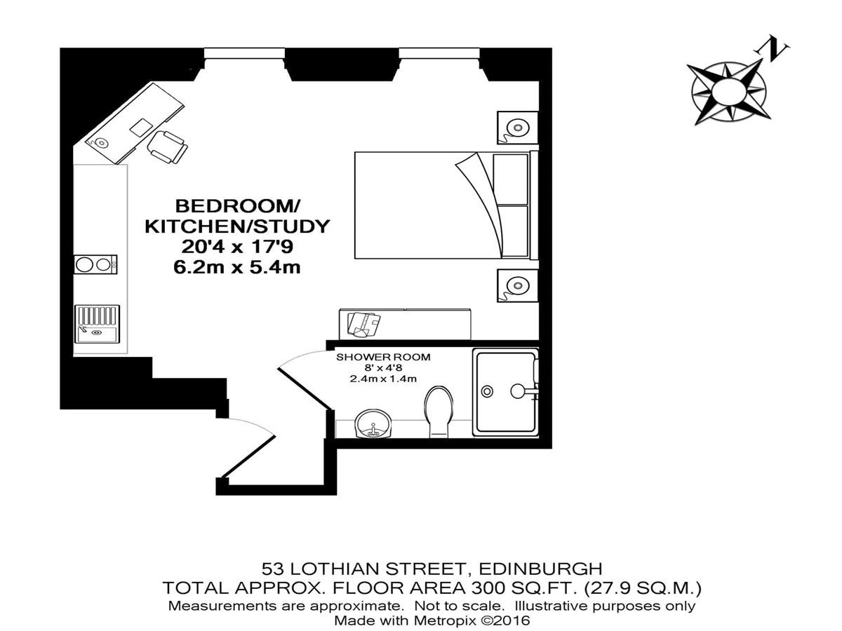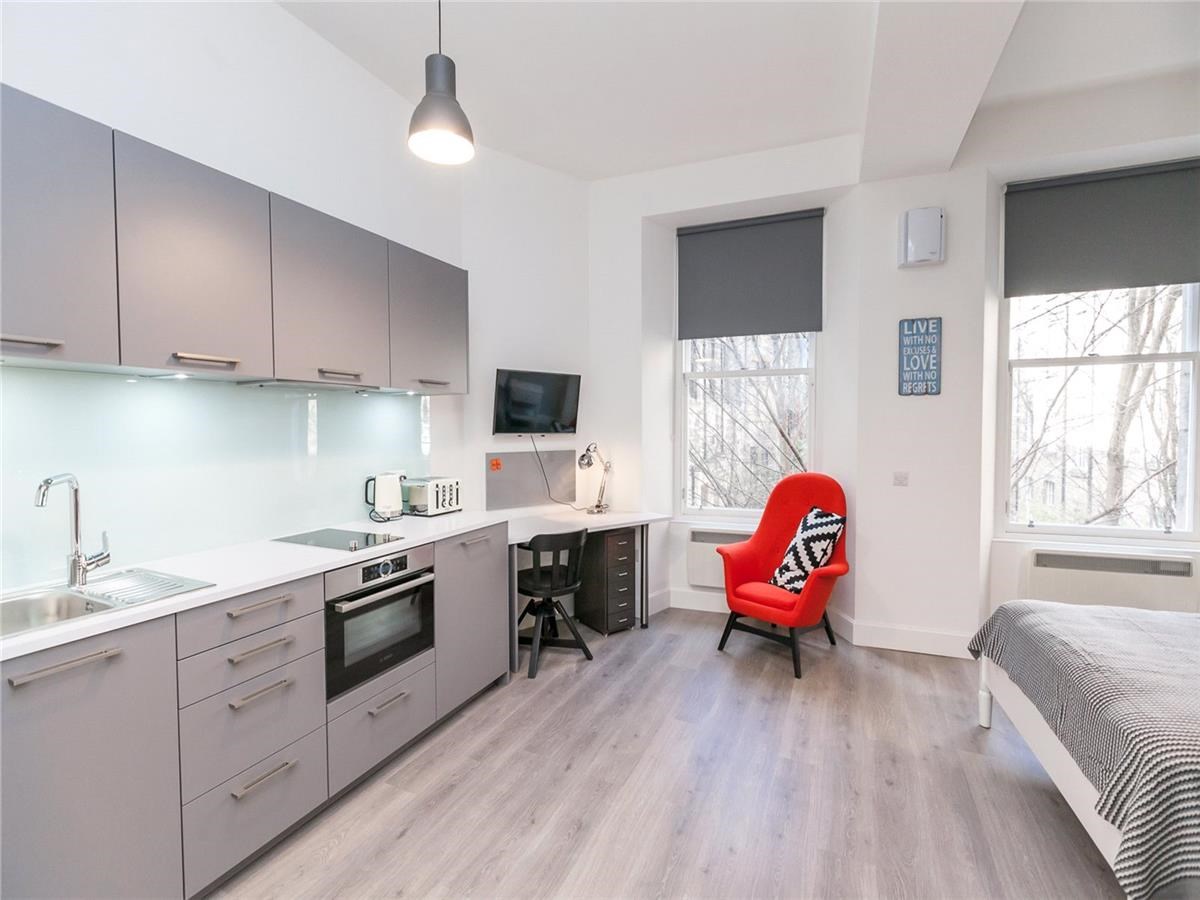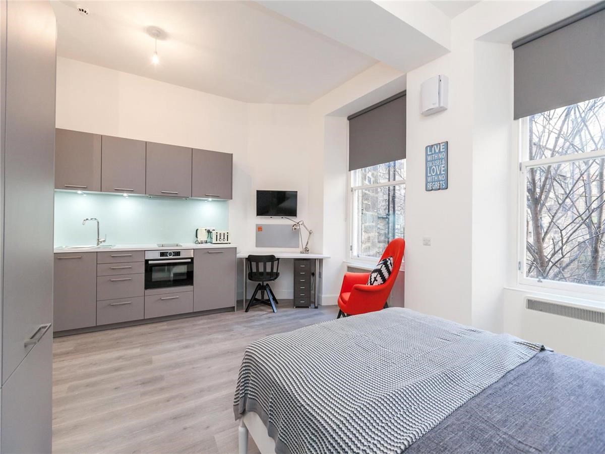 DEPOSIT £500 - This studio apartment would be suitable for a single occupant. The property is excellently equipped with dual hob, oven, and fridge freezer. Residents have the use of a communal laundry room well equipped with washing machine and tumble dryer. Accommodation comprises open plan living room with kitchen area, double bed, large wardrobe, desk, and a separate shower room. The property also benefits an extra storage cupboard suitable for a bike or suitcases, and is double glazed and has electric heating. no pets.