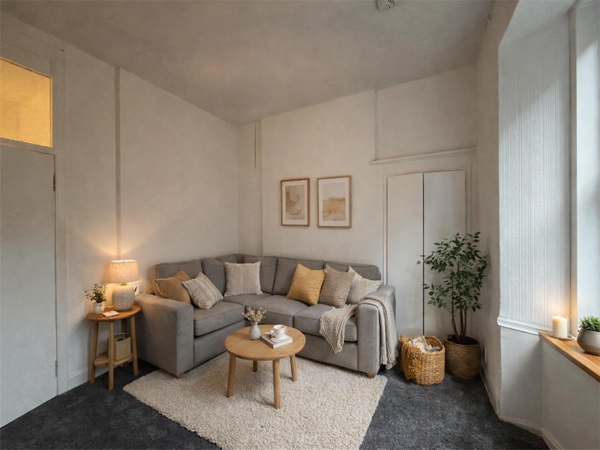 Property comprises hallway entrance with storage cupboard, 1 large double bedroom, a small study which could be used as 2nd bedroom, toilet and shower room. To the rear of the property is a modern fitted kitchen and period style large livingroom (the current picture is an artist impression of how the living room could look with a corner sofa). The property benefits from gas central heating and double glazing.