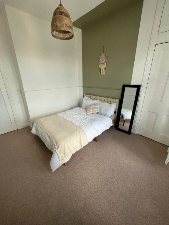 The first bedroom, to the rear of the property, is tastefully decorated, with storage and an abundance of natural light.