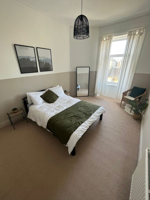 This top floor property benefits from high ceilings and views across the West and East of Paisley and beyond.