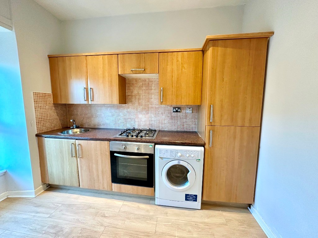 Situated on the third floor, the accommodation comprises of a hallway with large storage cupboard which doubles up as a walk in wardrobe, open plan living space / kitchen complete with appliances including fridge freezer, washing machine, gas hob and electric oven, one spacious double bedroom and bathroom with three piece white bathroom suite with electric shower over the bath.