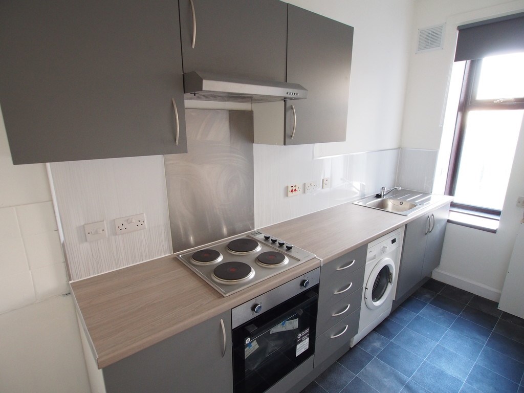 The property features one reception room, adorned with a large bay window that infuses the space with an abundance of natural light, creating an atmosphere of warmth and openness. The flat also houses a modern kitchen, equipped with white goods, offering a blend of functionality and style.