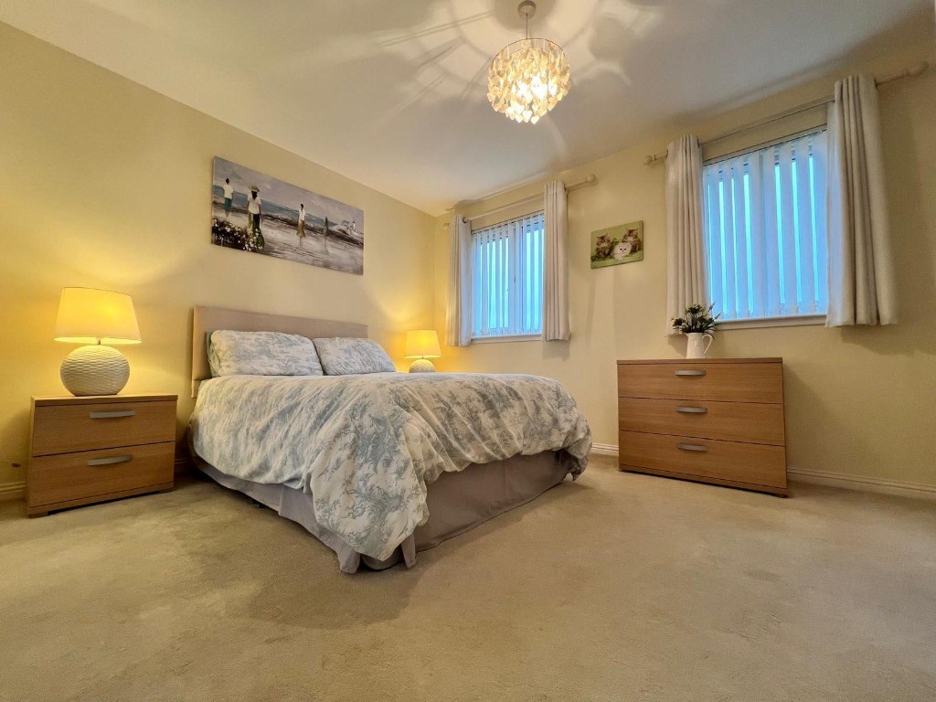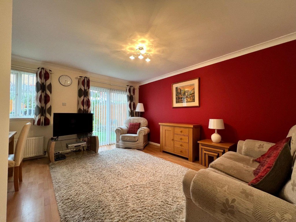 The property boasts a modern and stylish interior, featuring a bright and spacious lounge with patio doors that flood the room with natural light and open onto a private garden.