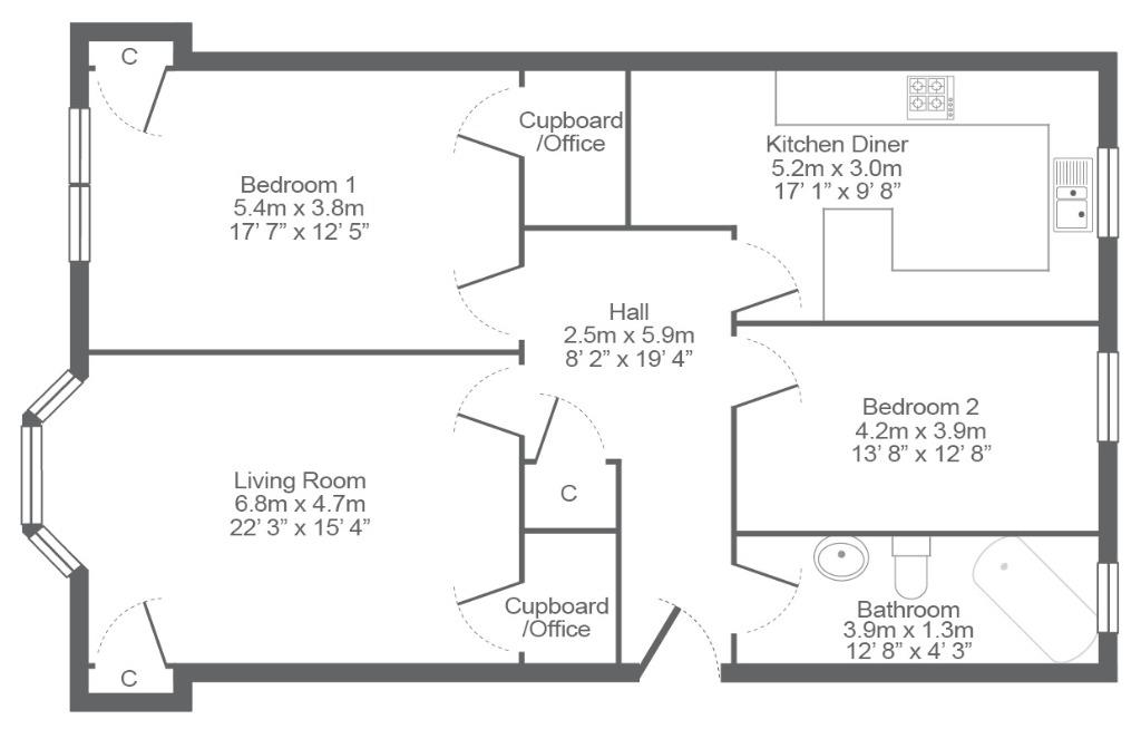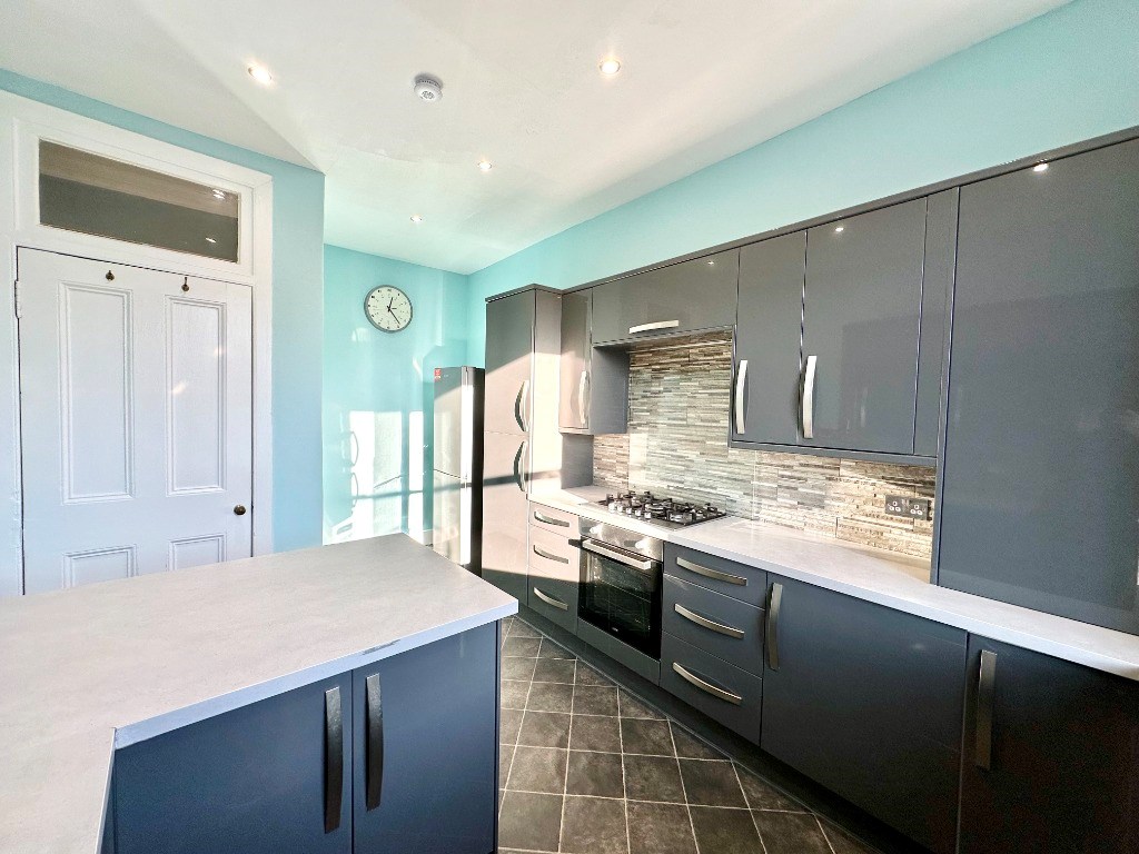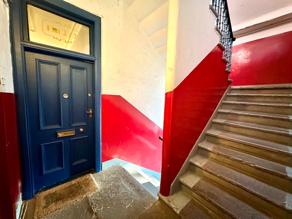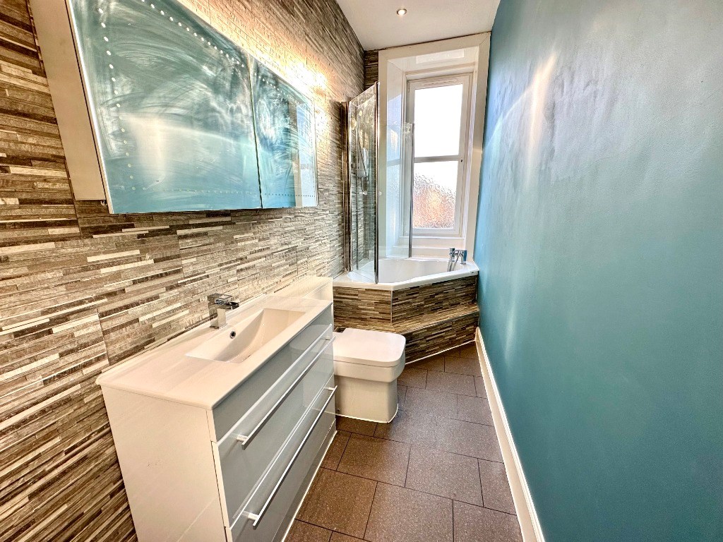 This property is located within a traditional tenement building and is entered into via a well kept close. The flat is located on the second floor which is accessed only via stairs. Internally, the property comprises of large hallway with storage cupboard which offers access to all apartments. There is a bright and spacious living room which has a feature fireplace, bay window and large corner sofa. There is also a large storage cupboard which could be used as an office space. The kitchen diner boasts a range of floor and wall mounted fitted units and comes complete with appliances including washing machine, fridge freezer, gas hob and electric oven. There is space for a dining table and chairs in the recess area at the back of the room. There are two double sized bedrooms, one with large storage cupboard which could be used as an office space. Completing the accommodation is the modern bathroom with white three piece bathroom suite and electric shower over the bath.