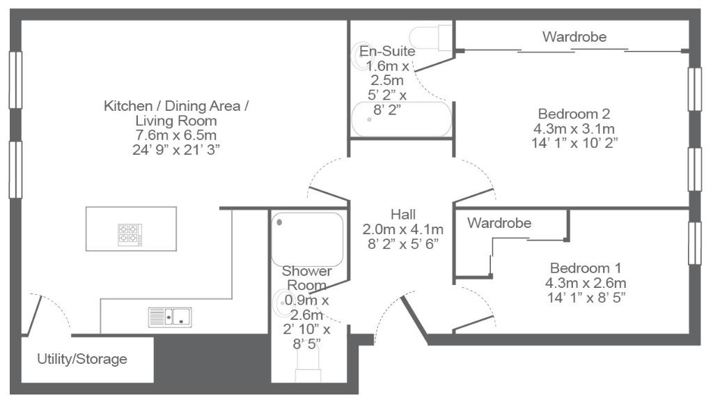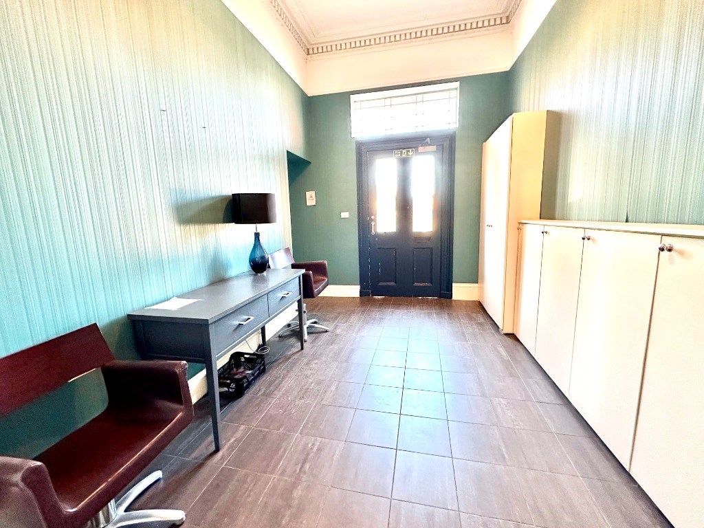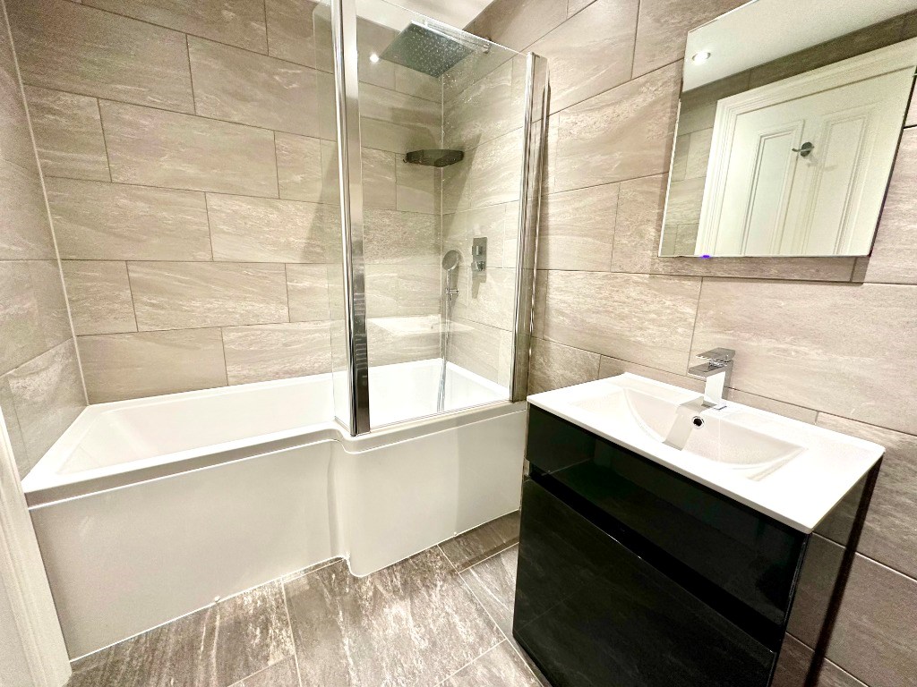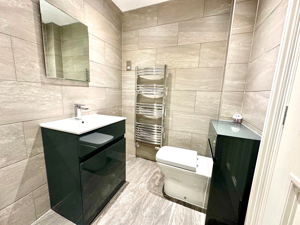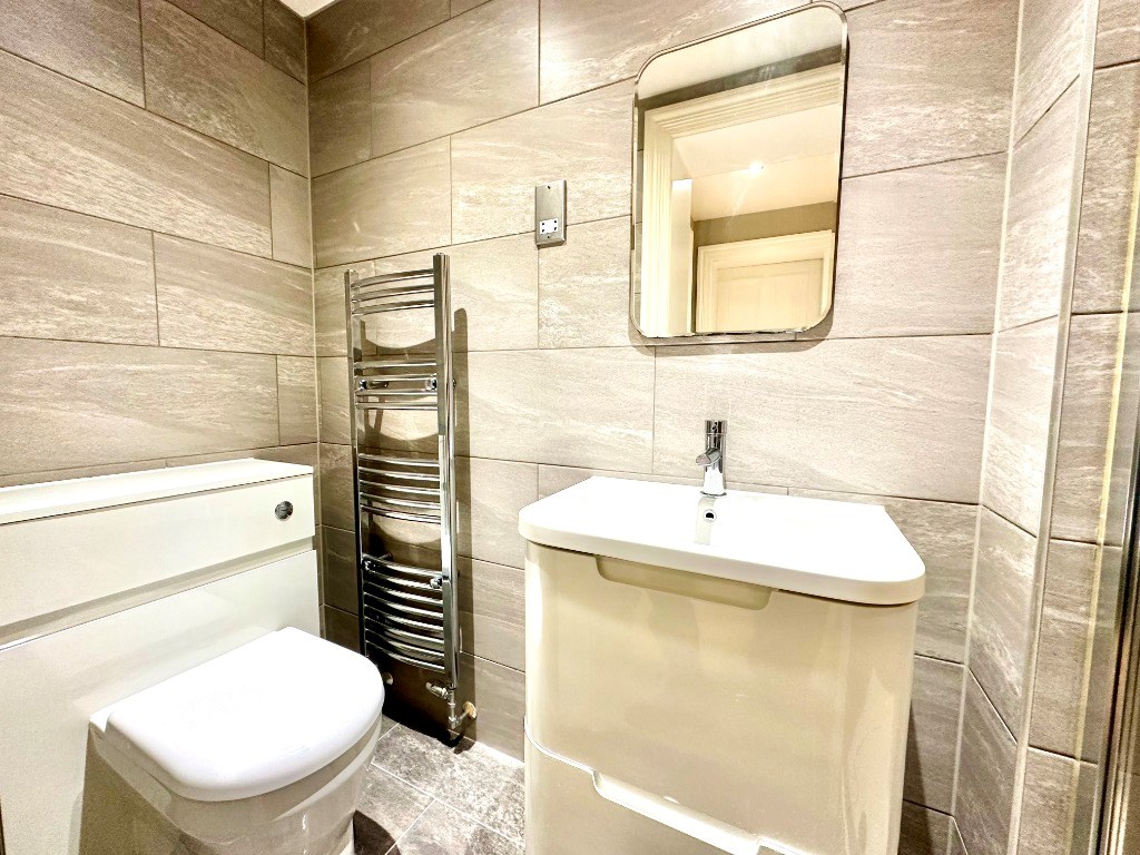 The property is entered into the welcoming reception hallway which offers access to all apartments including the fully-tiled shower room consisting of a sink resting upon a vanity unit, toilet and glass shower cubicle.
