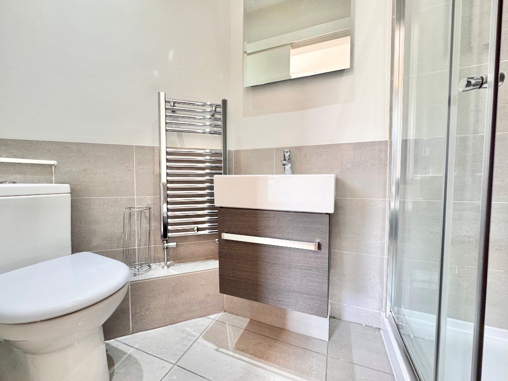 There are two double bedrooms, the master bedroom boasting an en-suite shower room and a further bathroom with a three piece white suite and shower over the bath.