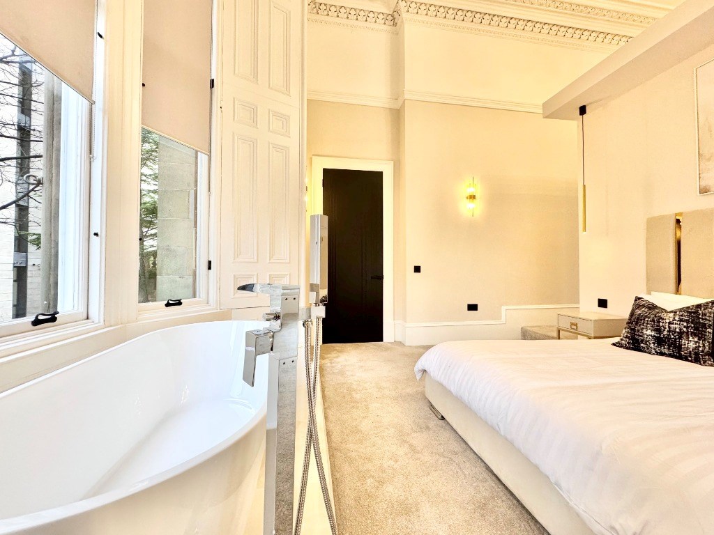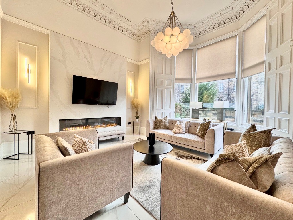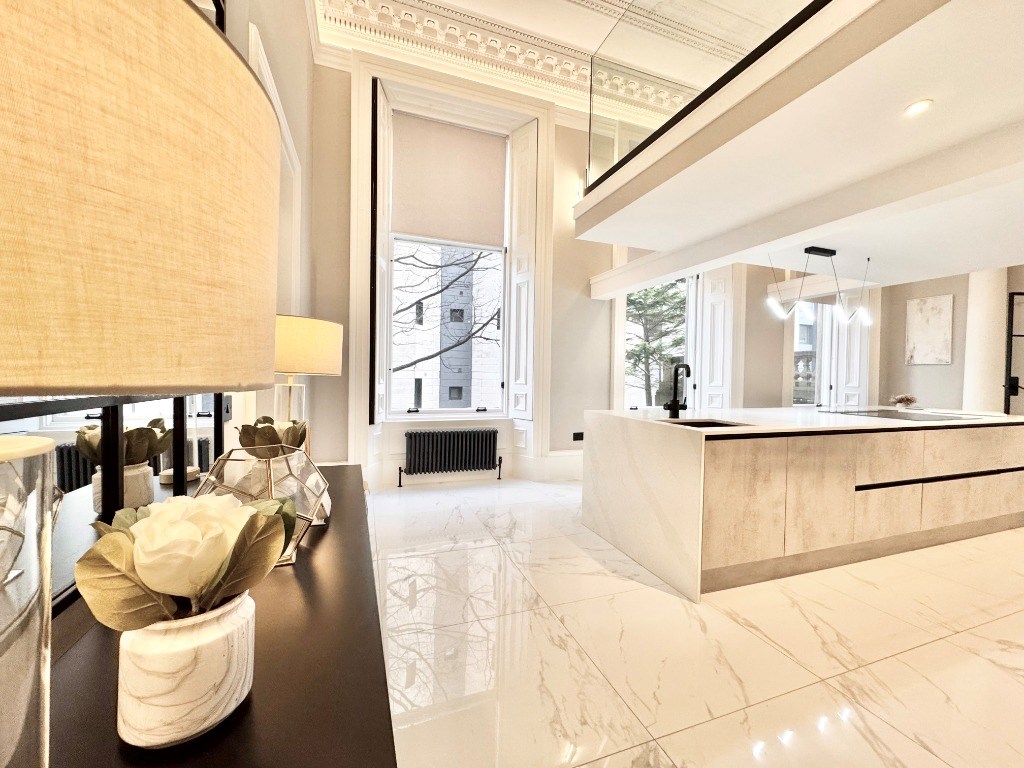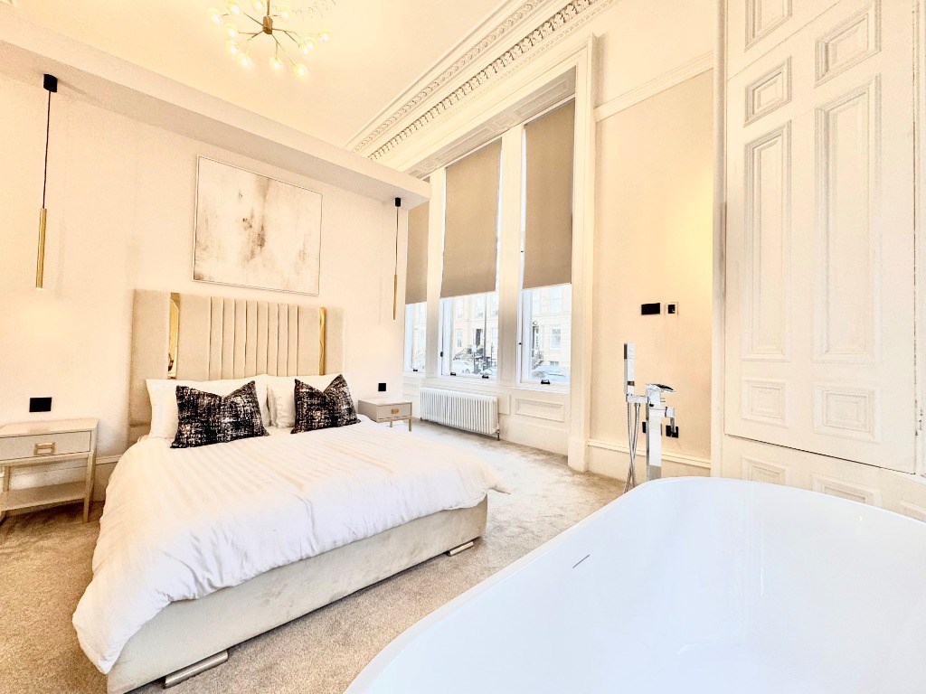 Macleod Lettings present one of the finest conversions in the renowned Park District of Glasgow. The internal accommodation comprises of a superb bay windowed lounge with media wall and is situated to the rear of the flat. The lounge leads through, via glass doors, to a stunning, contemporary dining kitchen, which is flooded with natural light via three enormous sash and case windows.