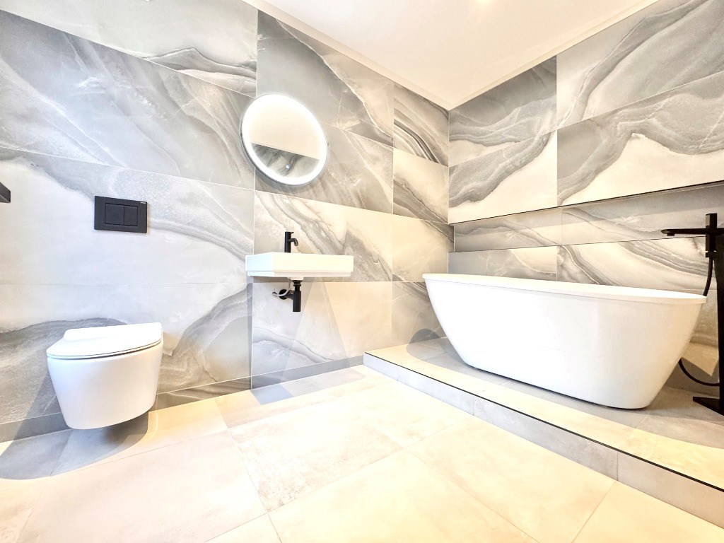 There is a rear hallway which provides access to a beautiful main family bathroom with freestanding bath the focal point of the bathroom.
