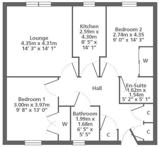 Both bedrooms are doubles and both have fitted storage where the master bedroom benefits from having an en-suite shower room with a sink, toilet and shower cubicle.