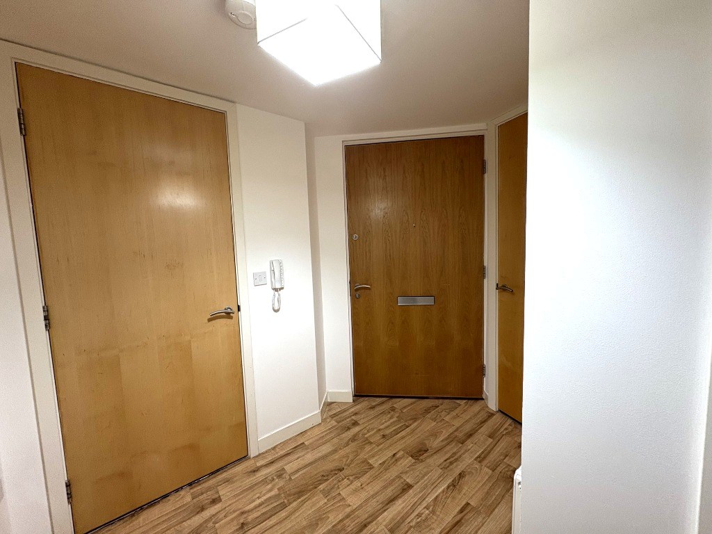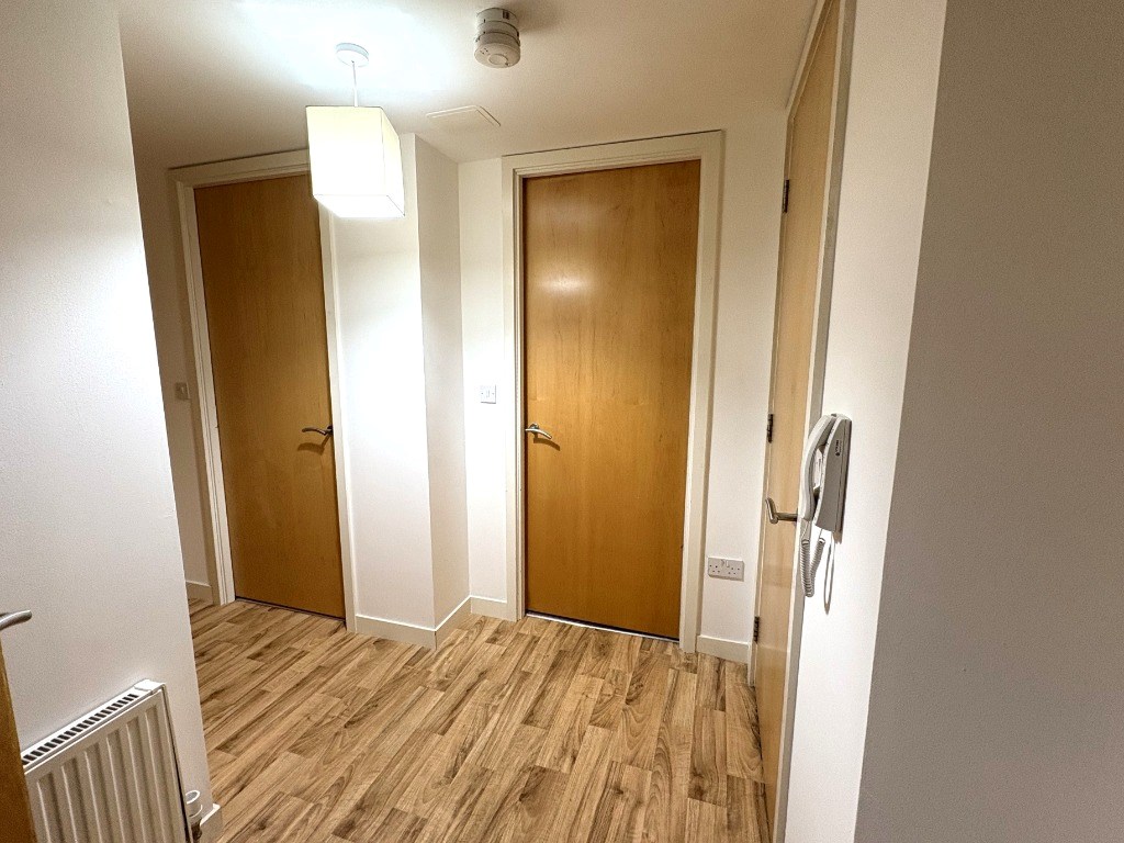 Accessed via a secure entry system with the added benefit of lift access the apartment opens into a bright and spacious hallway with two useful storage cupboards one cleverly plumbed for a washing machine keeping the living areas clutter free and functional. Open-plan lounge/kitchen flooded with natural light from large window/patio door, which opens out onto a private balcony, this inviting space offers the perfect spot to unwind looking over the surrounding views. Master bedroom with fitted wardrobes and ensuite shower room and 2nd double bedroom and bathroom with white 3 piece suite.