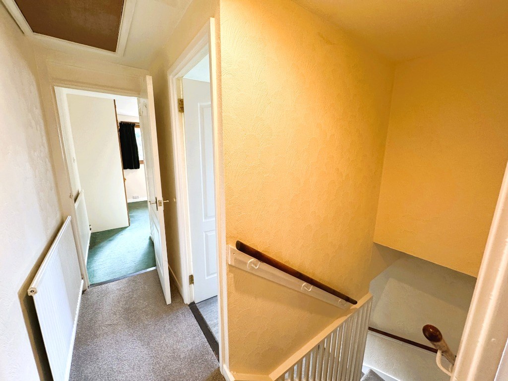 • Two well-proportioned double bedrooms – the front bedroom benefits from built-in wardrobes and a large storage cupboard, while the rear bedroom includes an over-stairs storage space.
