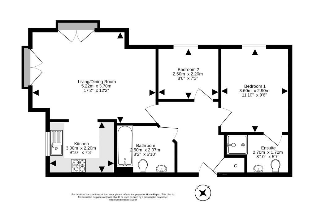 The property for let comprises: spacious, open plan living dining room with two sets of French doors which open out to Juliet balconies. The modern kitchen is well-appointed and offers plenty of cupboard storage. The principal bedroom is of a good size and benefits from a stylish en-suite. The second bedroom is also of a good size. The bathroom is made up of a 3 piece white suite with electric shower over the bath.